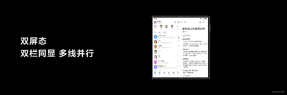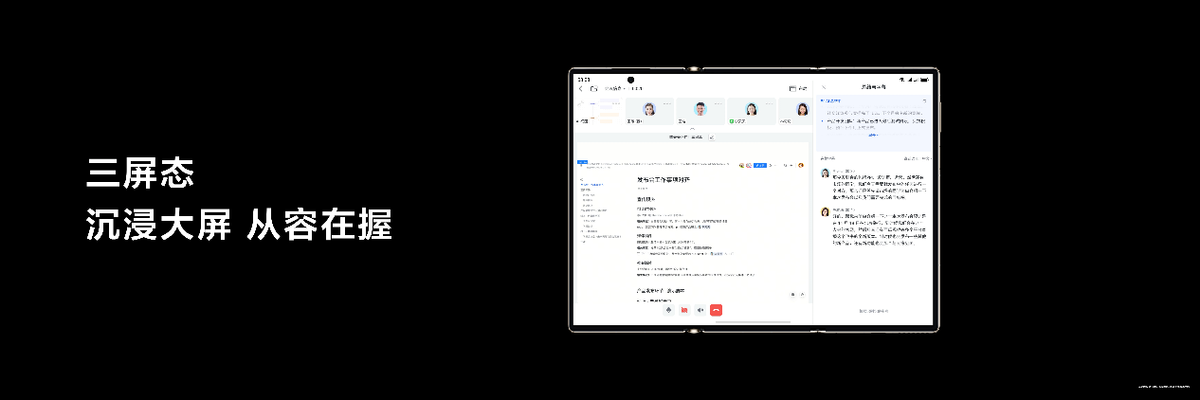 以往在手机上处理绘制流程图、编辑表格等复杂工作任务时,总受限于屏幕小、操作不便,最后还是得用电脑完成。但各类办公应用和华为Mate XTs非凡大师的深度适配,正在打破这种局限。以鸿蒙版飞书为例:在单屏状态下,它和普通手机界面一样,便于快速操作;双屏状态下,会自动分成左右两栏,用户可以高效回复消息;完全展开三屏状态后,鸿蒙版飞书能够呈现出更接近PC的布局逻辑,菜单、多标签页完整显示,操作更高效。