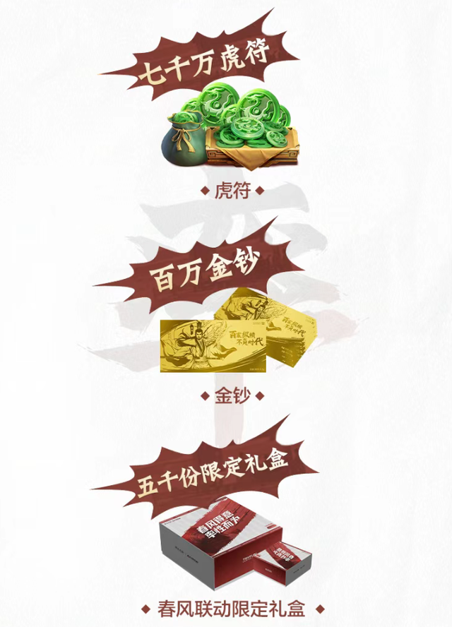 而新人被吸引,除了因为官方多年为玩家们降肝减负以外,还因为发送福利时毫不吝啬的力度。就比如最近举办的率土开荒节盛典,官方直接拿出一亿巨额数量的虎符供玩家们集体瓜分!只要玩家们积极参加打城就有机会可以领取数额丰厚的虎符,占领地块更是有机会触发彩蛋领取6480虎符大奖,限时冲榜冲前50名的玩家们还能领取精美的春风联动限定礼盒一份。