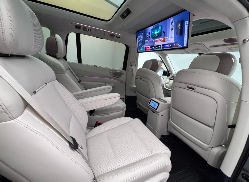 智能体验上,领克 900 处于同级领先水平。车内搭载同级最大的 30 英寸主副驾一体式中控屏与 30 英寸 6K 悬浮式娱乐屏,前后屏幕可无缝连接,娱乐内容能在不同屏幕间自由流转,满足家庭成员的娱乐需求。车机系统内置双 8295 芯片,数据处理能力强劲,搭配 Lynk Flyme Auto 车机系统,构建出流畅、互联且生态丰富的智能座舱,操作响应迅速,功能覆盖全面。辅助驾驶领域,其全球首搭 NVIDIA Thor 芯片,算力达 700TOPS,支持端到端大模型、多模态大语言模型等功能,推动辅助驾驶进入 AI 时代,确保车辆辅助驾驶能力处于行业第一梯队,为出行安全提供有力保障。