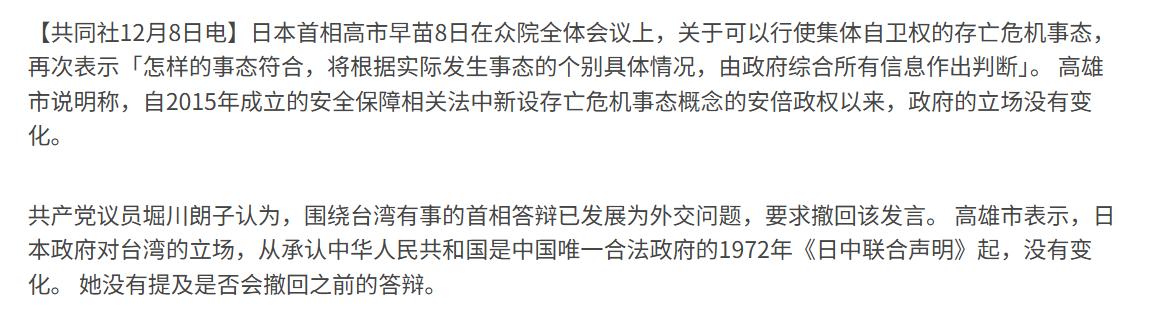 据共同社报道,高市早苗日前在国会遭到在野党的步步紧逼,要求她撤回涉台相关不当表态,以挽救中日关系。然而,高市早苗仍然十分头铁,继续在台湾问题上玩弄文字游戏,狡辩日方立场没变,只字不提收回错误言论。
