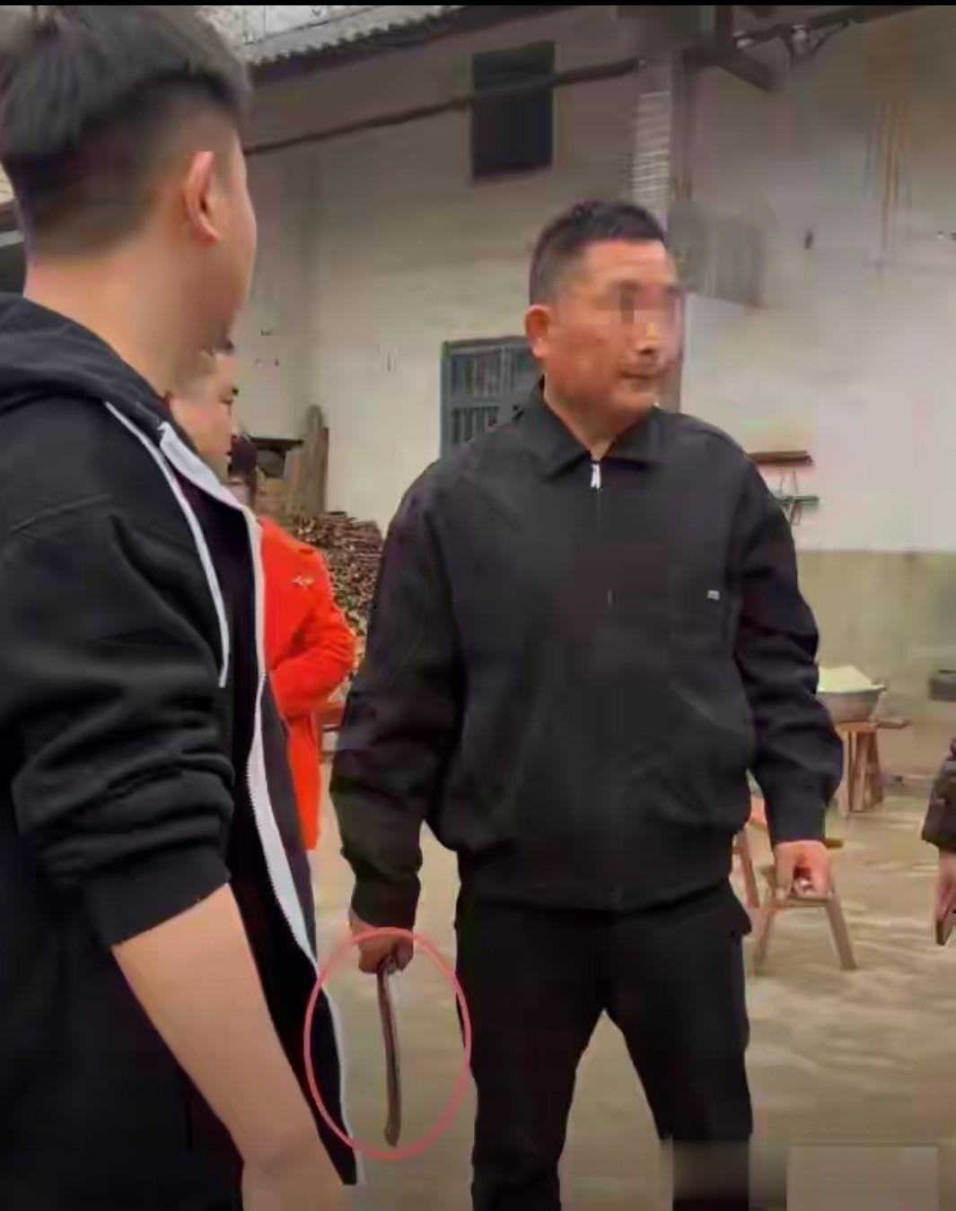 团队负责人及成员本想摆摆道理,跟吴村民好好沟通下,吴某鸣直接喊出七八个村里,有的人手里攥着镰刀,有的人拿着砍柴刀,围在院子里,这架势摆的很清晰——不给钱,谁也不能走。