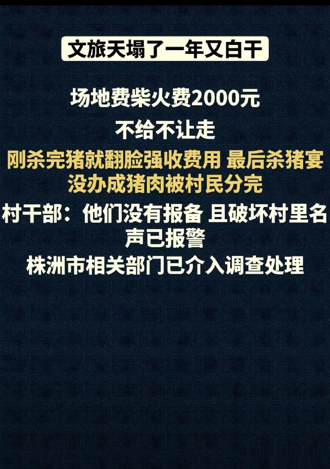 恐怕株洲文旅忙的“头都要大了”,之前因灿灿子要举办杀猪宴“闹”出的影响还没消除,又被闹出“抢猪村”的笑话,地方名声算是被砸了。