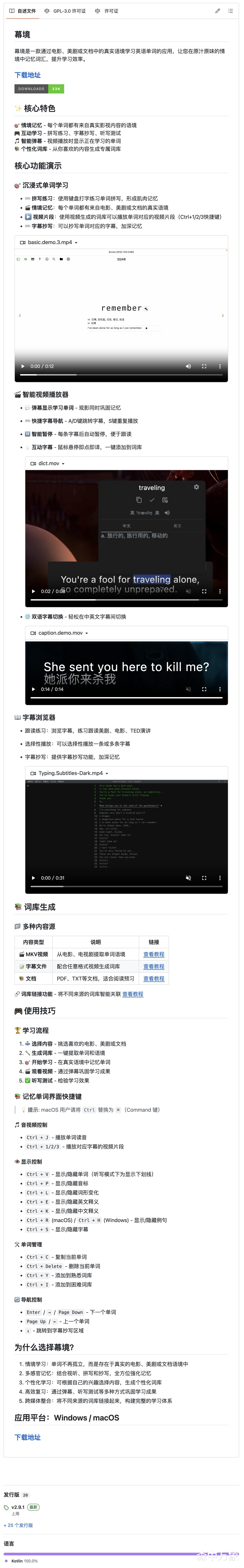 项目信息速览项目地址:https://github.com/tangshimin/MuJing
