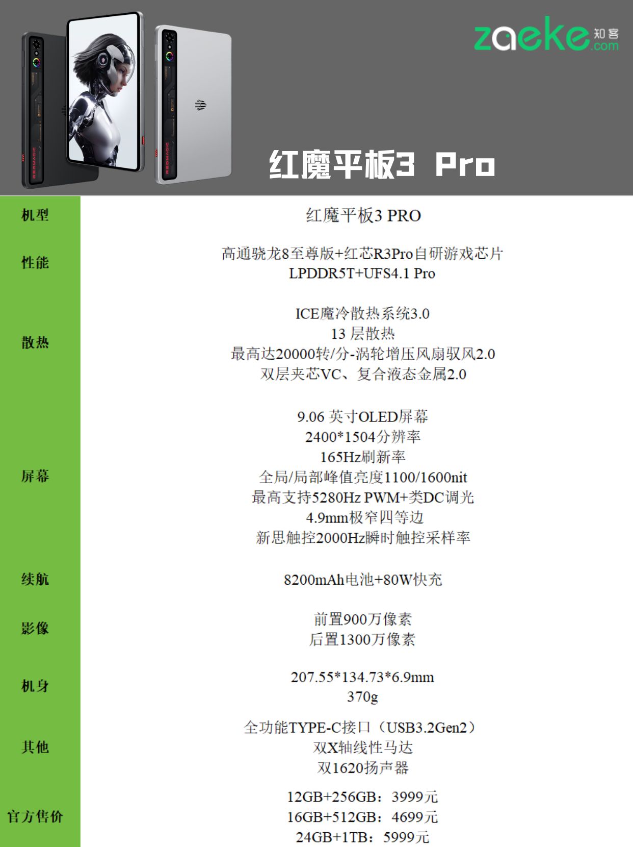 配置:顶级硬件打造性能怪兽或许你对红魔平板3 PRO的配置已了然于胸,但ZAEKE知客仍想再“复读”一次。因为红魔此次交出的答卷,值得被尊重。