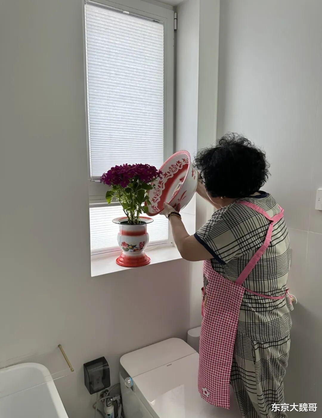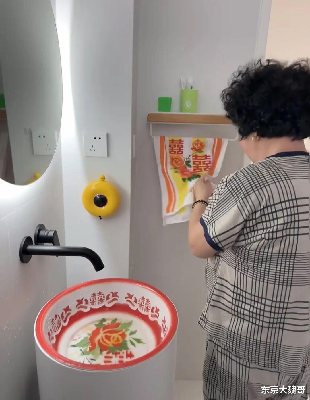可你别说,这个略显突兀的搪瓷盆,愣是让冷冰冰的卫生间多了点生活气。