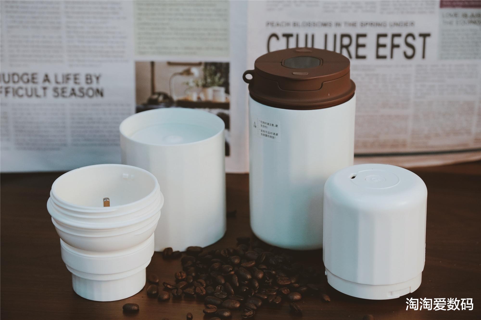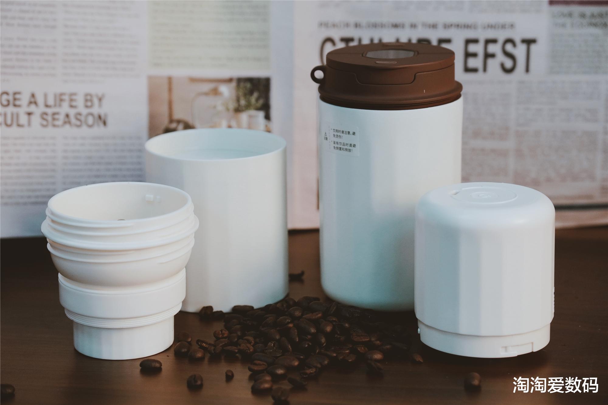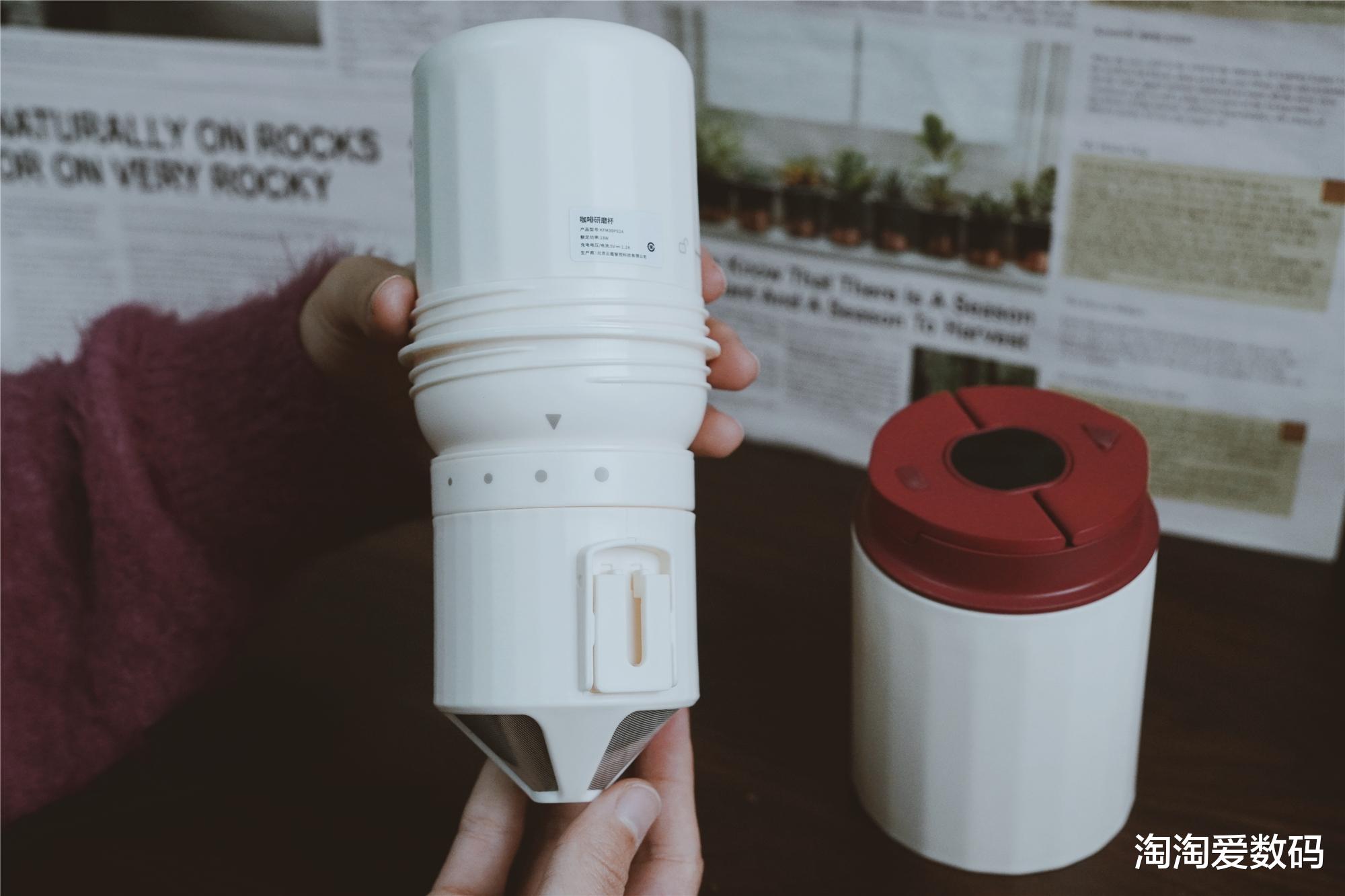 觉美joymaylab便携研磨一体咖啡机的咖啡豆仓,说真的挺大的,装满的话,可以研磨出很多杯咖啡!