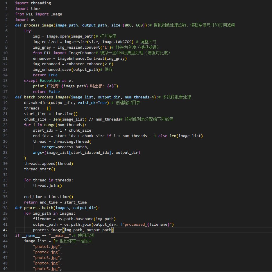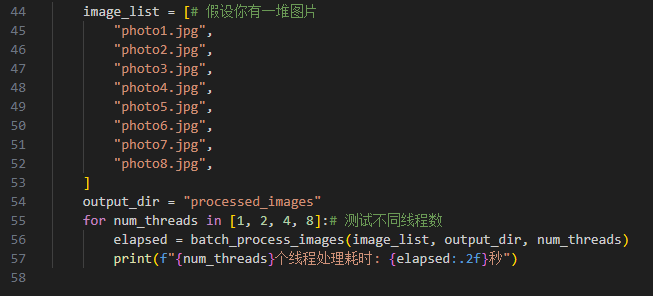 这个例子更实用吧?你把自己的图片路径填进去,然后分别用1、2、4、8个线程跑一遍,对比一下性能。在自由线程模式下,你会看到线程数越多,处理速度越快(直到达到你的CPU核心数上限)。