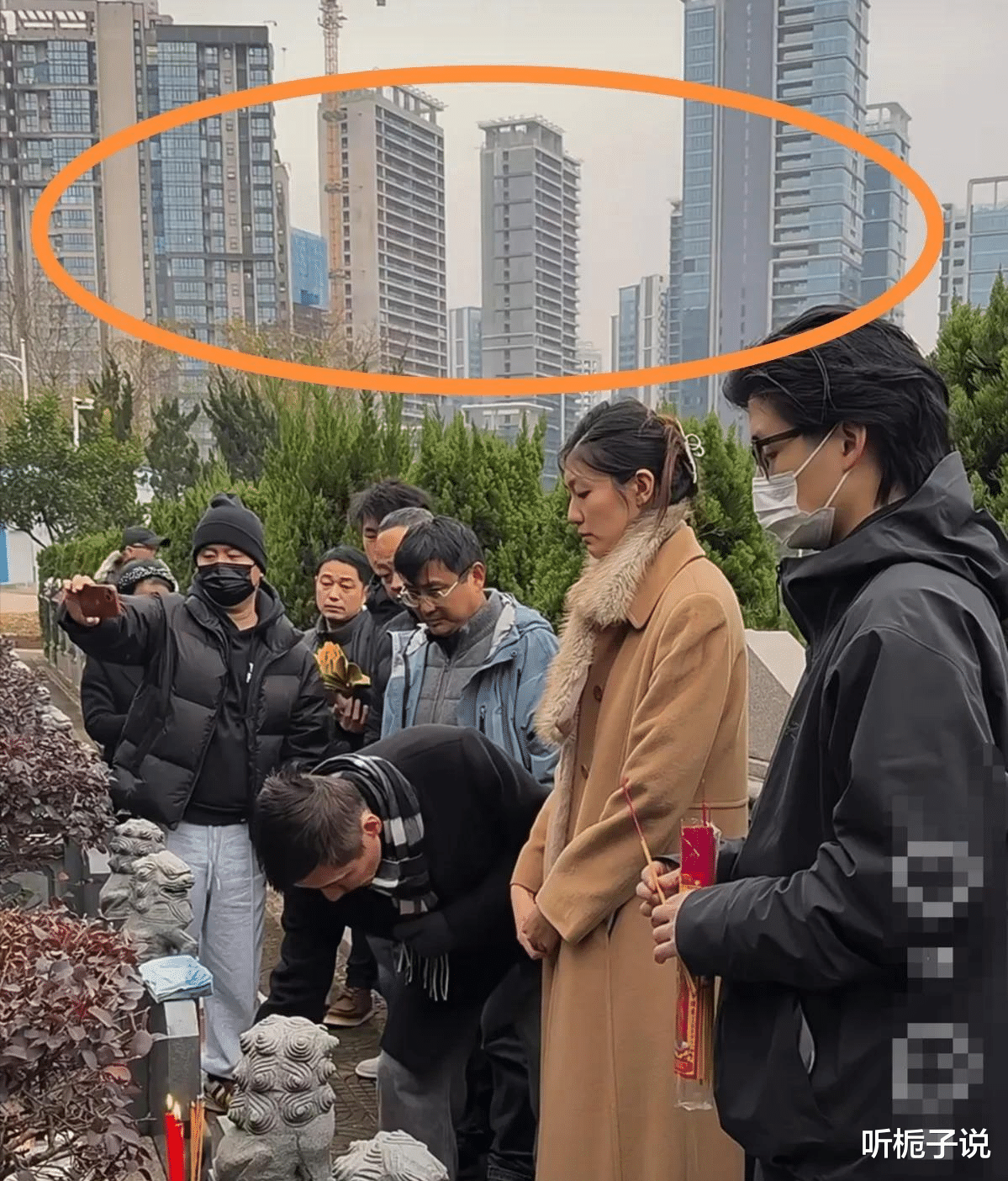 张子健与依依身旁,还围了其他人,想来是李婷的娘家人,至少有十几位一同祭拜她,从李婷弟弟的视角来看,也暴露了李婷墓地周围的环境。