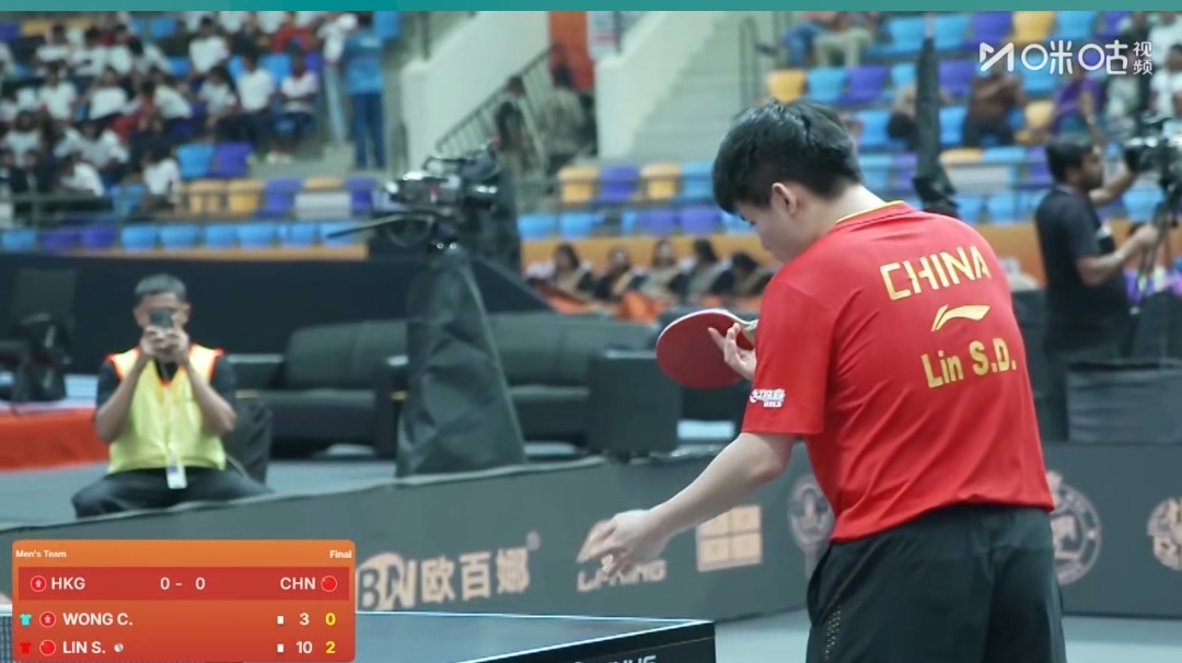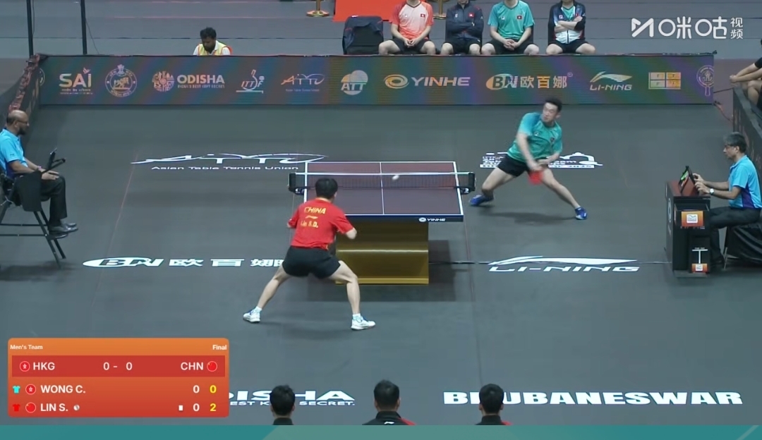 此次决赛中国队出场比赛队员为:王楚钦、林诗栋、梁靖崑,中国香港队则是黄镇廷、陈颢桦、姚钧涛。