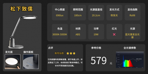 推荐理由:符合国AA级照度标准,中心亮度比较高,日常读写够用。