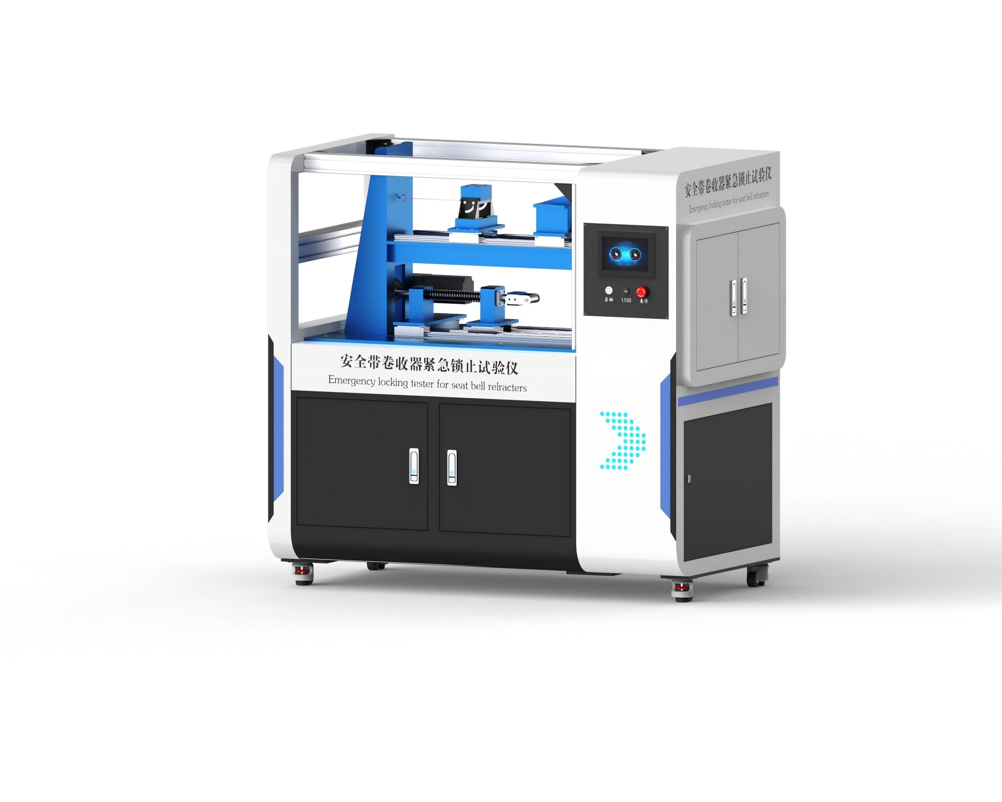 汽车安全带卷收器紧急锁止试验仪通常用于测试汽车安全带卷收器的紧急锁止功能。在车辆发生急停或碰撞时,安全带卷收器会通过紧急锁止功能迅速锁住安全带,防止乘客在意外事故中受伤。
