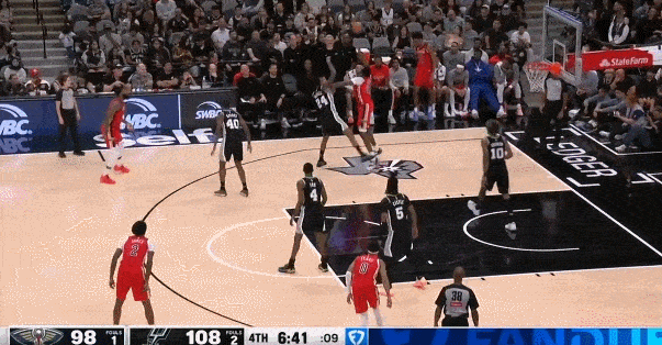 Zion继续缺阵,奎因本场对马刺仍然拿到了不少的出场时间,继续展现他进攻端的潜能。