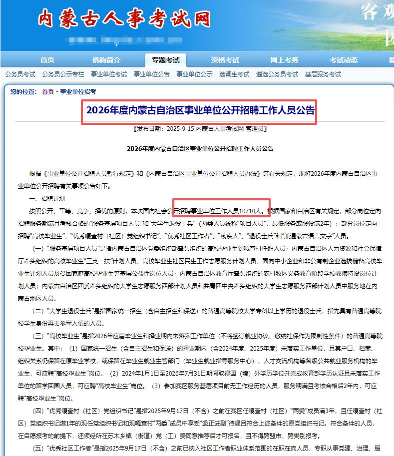 2026年内蒙古事业单位