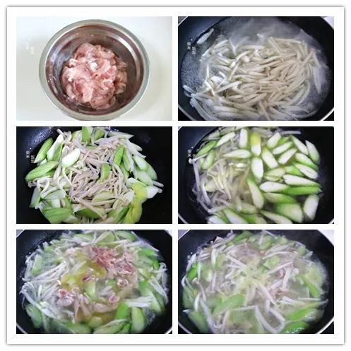 5. 把腌制好的肉片放入锅中,用筷子迅速搅散,大火煮开后,转成中火再煮两三分钟,直至食材完全熟透。
