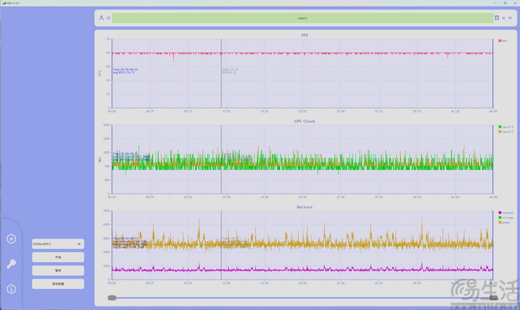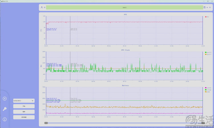4小时40分钟时,电量显示仅剩10%,很显然,随着电池电压的降低,剩余的“电量”已经较为吃力,所以从表面上看,电量消耗的速度也会变得快起来。不过需要注意的是,此时iQOO Z11 Turbo的游戏帧率,几乎并没有怎么下降。