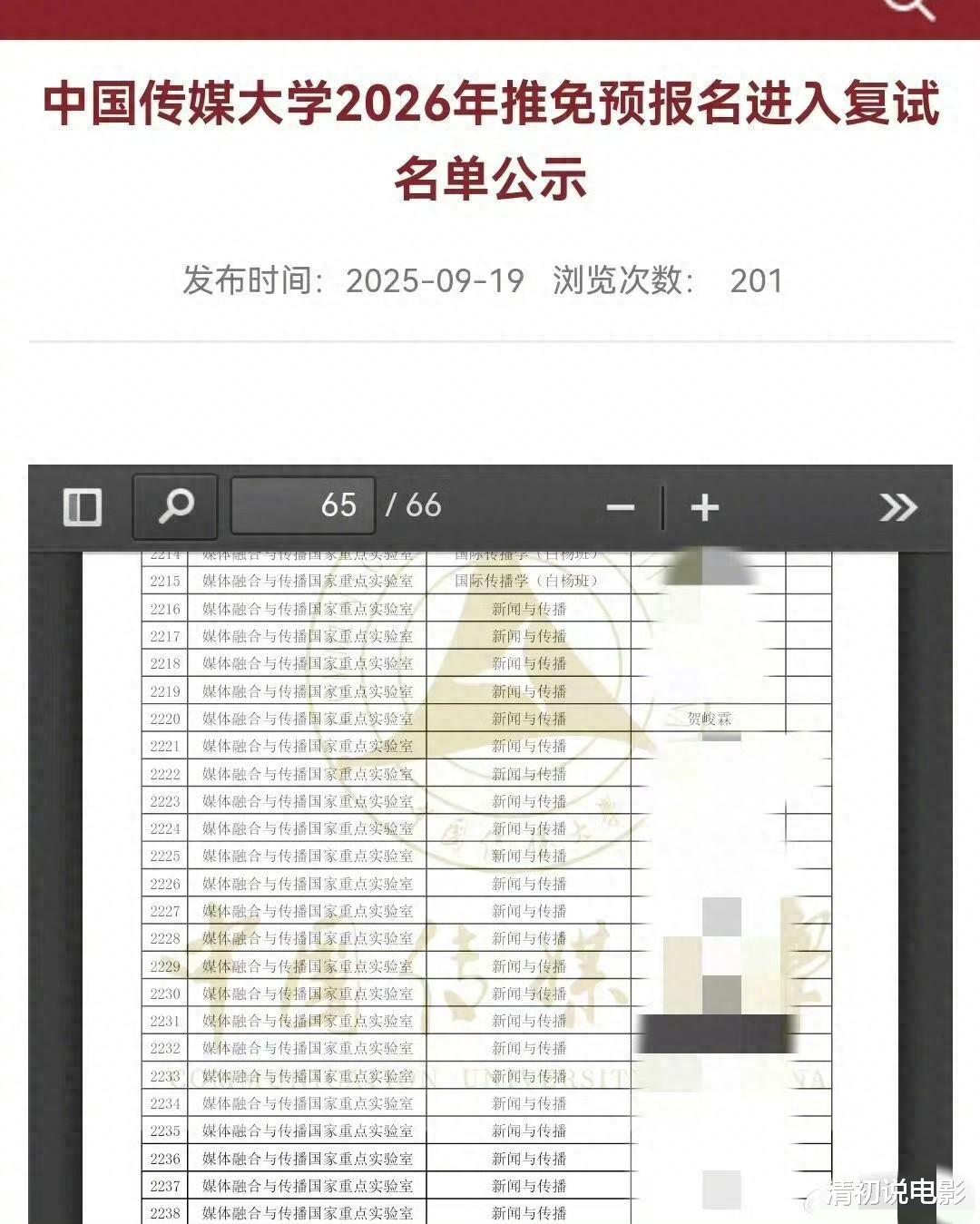 最近,贺峻霖保研的消息引起大众广泛关注。根据中国传媒大学发布《2026年推免预报名进入复试名单公示》,可以看到贺峻霖名列