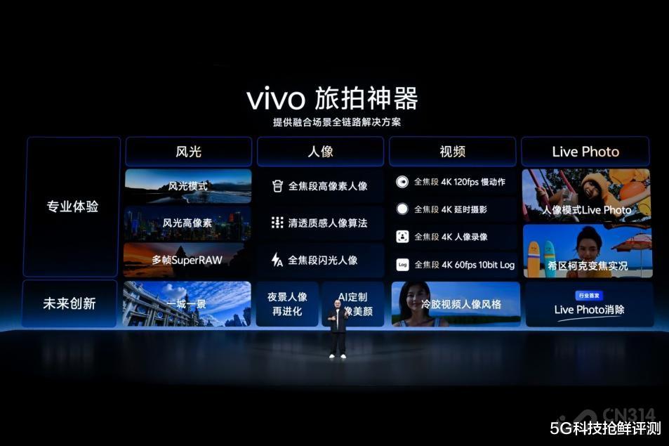 视频方面,vivo实现了全焦段4K 120fps慢动作、全焦段 4K 人像美颜美型和全焦段4K 60fps 10bit Log,行业首发人像模式Live Photo及Live Photo消除功能,以更强大的全链路影像实力,为用户定格拥有瞬间生命力的美好时刻。vivo还将不断推出“冷胶视频人像”等风格化视频模板并首发自研AI定制美颜,满足年轻人多样的创作需求。