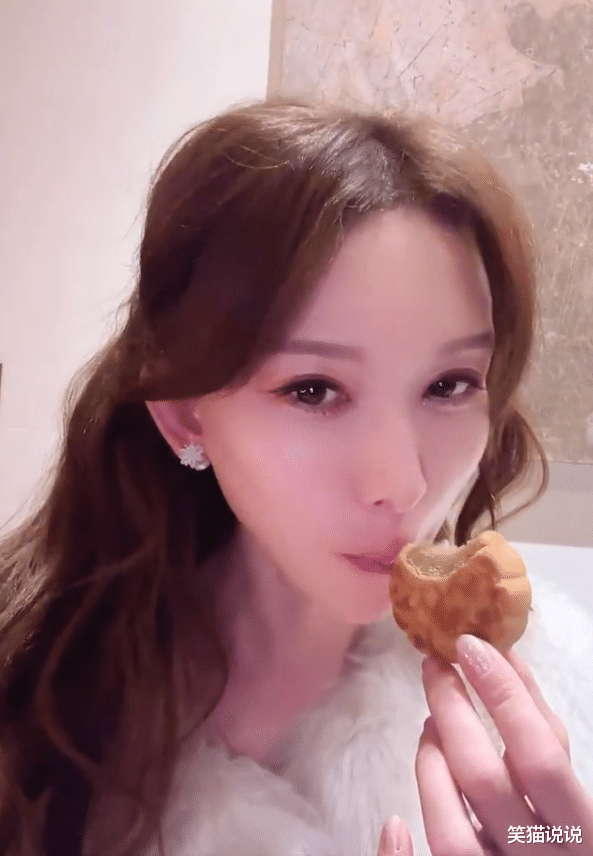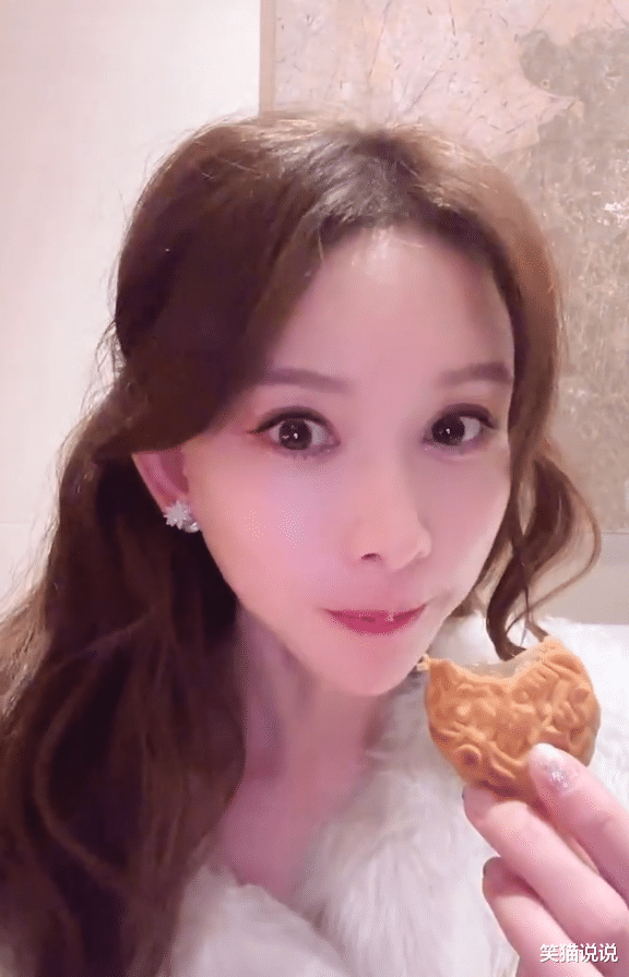 在视频中可以看到林志玲穿着一件白色的皮毛外套,披散着棕色的大波浪长卷发,戴着珍珠耳环,看起来十分贵气优雅,又很有气质。她的手里拿着精致可爱的月饼,对着镜头一口一口地吃了起来。林志玲吃得津津有味的样子,看起来这个月饼好像很好吃的样子。