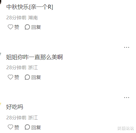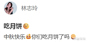 在咽下月饼后,林志玲还不忘记对着镜头说了一句“中秋快乐”的祝福语,之后还对着吃剩下的月饼亲了一个香吻,像是在隔空跟粉丝们打招呼,发送中秋节的祝福。粉丝们也看到了林志玲的中秋祝贺视频,也纷纷发送中秋节的祝福语。