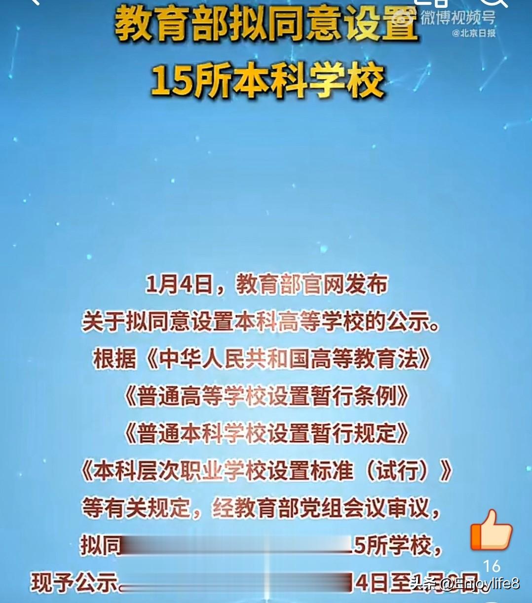 教育版图新拼图:呼应时代的必然之举此次公示的15所新高校,犹如一块块精心调整的拼图,正在重构中国高等教育的版图。无论是应急管理大学的横空出世,还是职业本科的稳步推进,都绝非偶然。