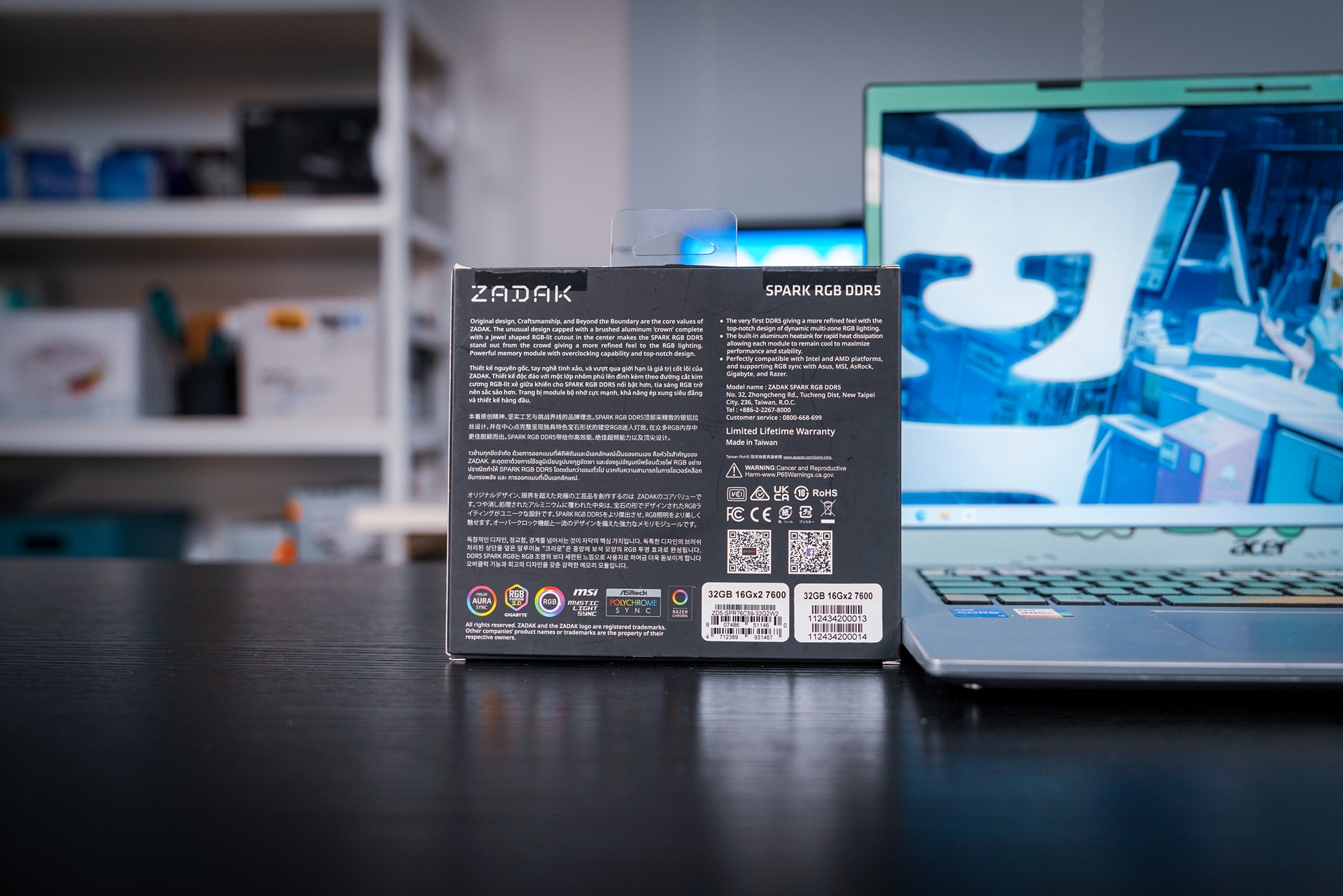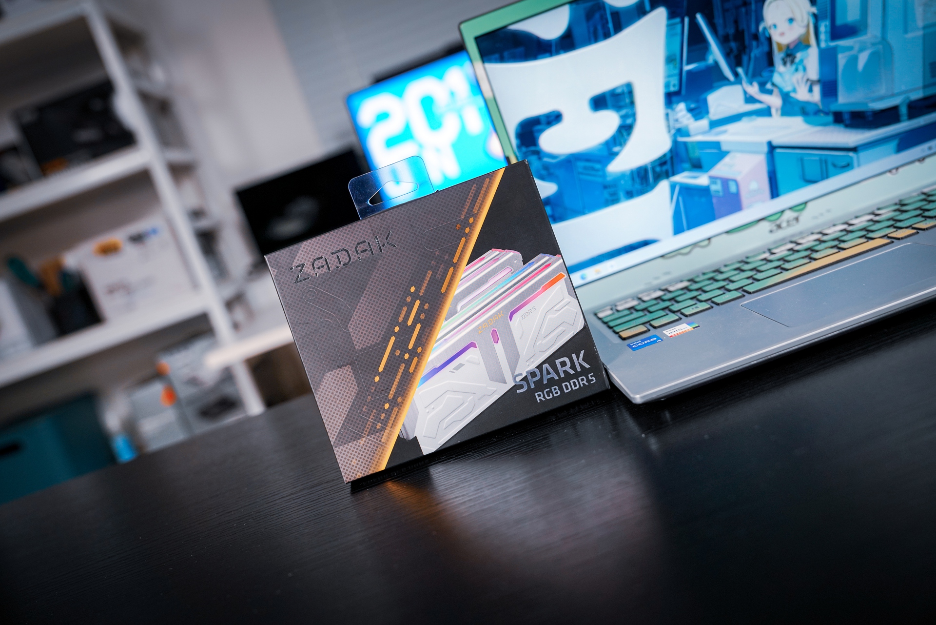 选择频率高的内存适合折腾的老玩家,而新手则推荐选择比较主流的频率为最佳选择。这次就以这套新上手来自宇瞻的新品DDR5 内存--ZADAK DDR5 7600 16G*2来看下这些主流的D5内存适配于什么平台上使用。先来看下这套内存的开箱以及外观介绍。做为存储的老品牌,宇瞻、全何、oloy这几家在国内属于认知度并没有那么高(台企存储品牌)不同于其他几家(台企:芝奇/威刚/十铨)(美企:金士顿/海盗船)存储厂牌在国内的知名那么高。ZADAK SPARK 内存的包装为灰黑主色调,左上角银色的ZADAK品牌系列,中间为内存图示,右下角为其型号SPARK RGB DDR5。在包装设计上真的不如其他品牌来的精致,毕竟ZADAK系列也属于宇瞻的高端内存系列,在包装上对比其他品牌真的稍逊一筹了。