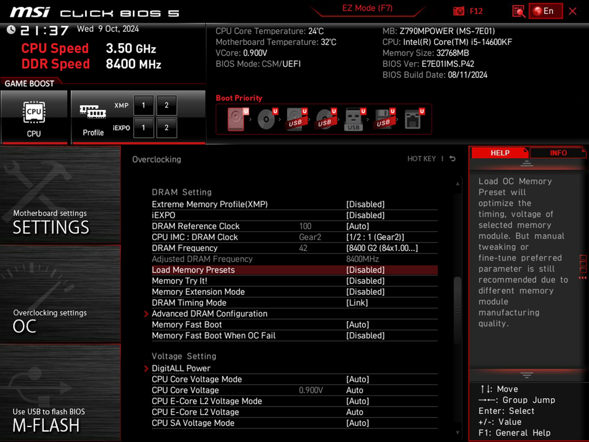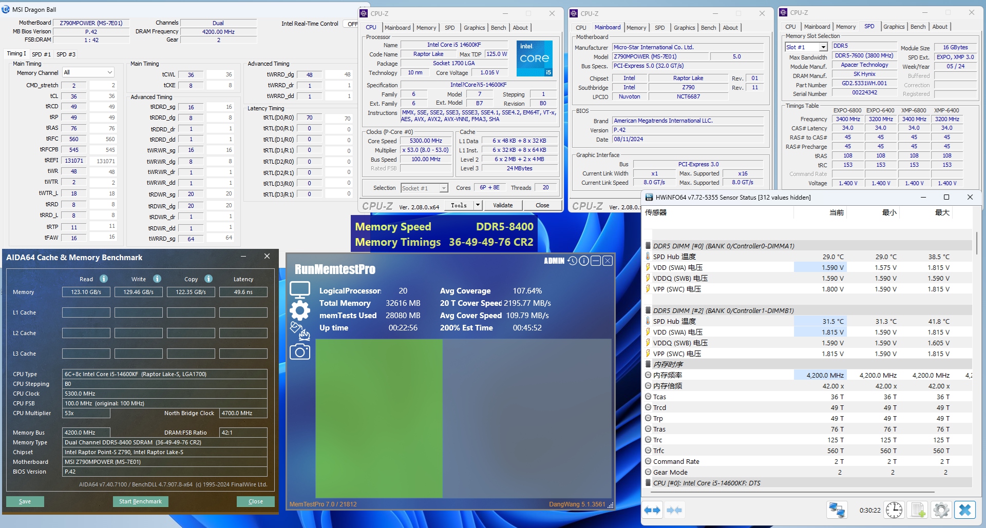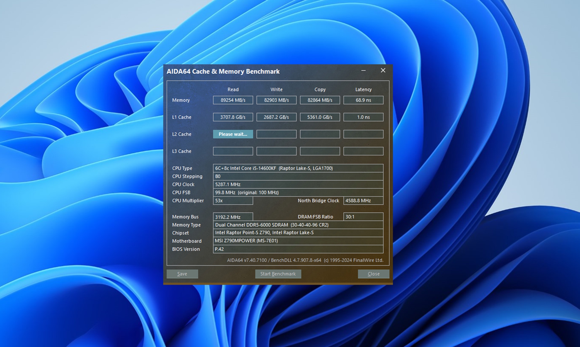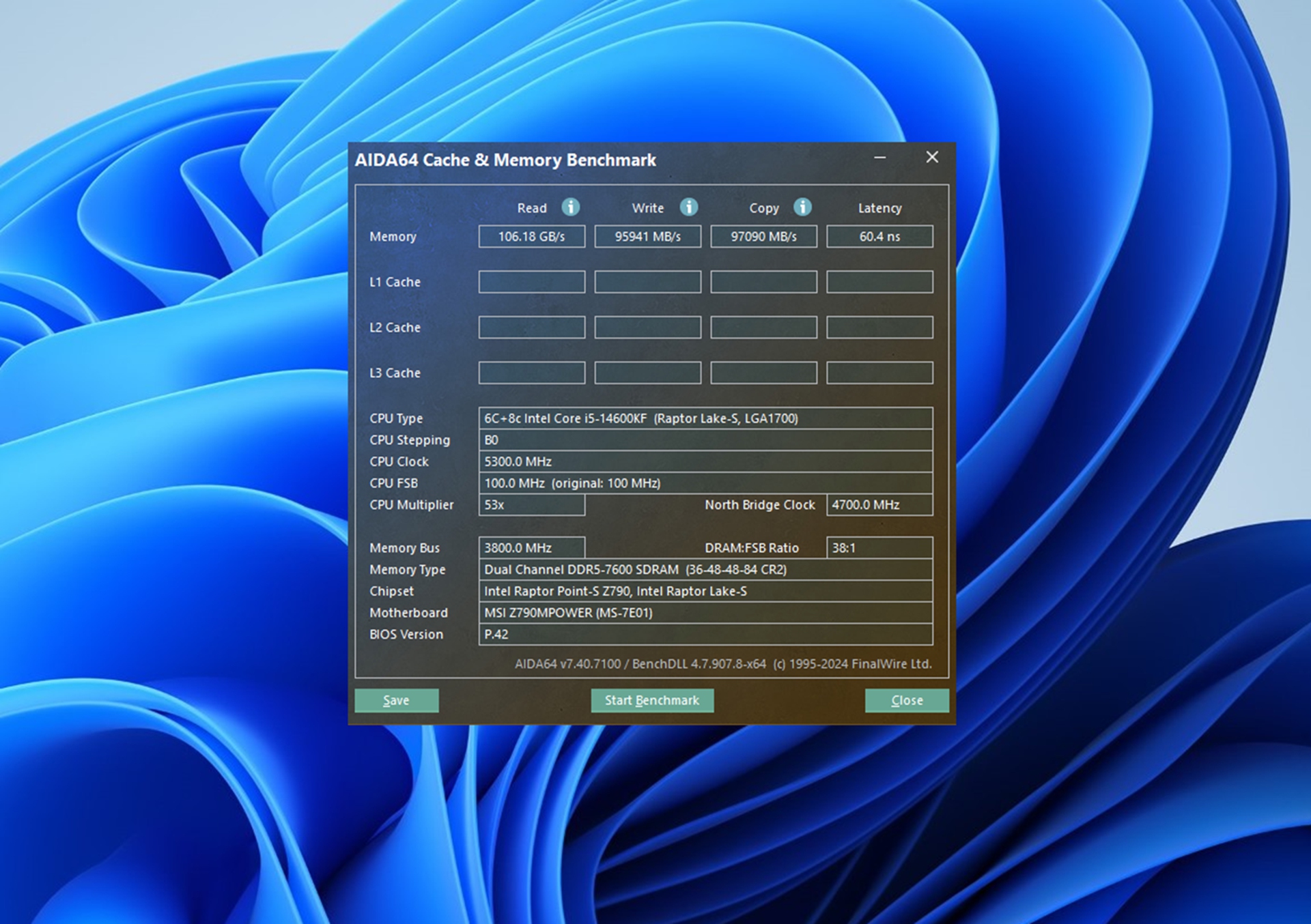 使用手上这套亲民平台:I5 14600KF和微星亲民款的超频主板Z790M POWER来测试手上现有的各款频率的内存,看在开启XMP内存超频后的内存延迟对比。