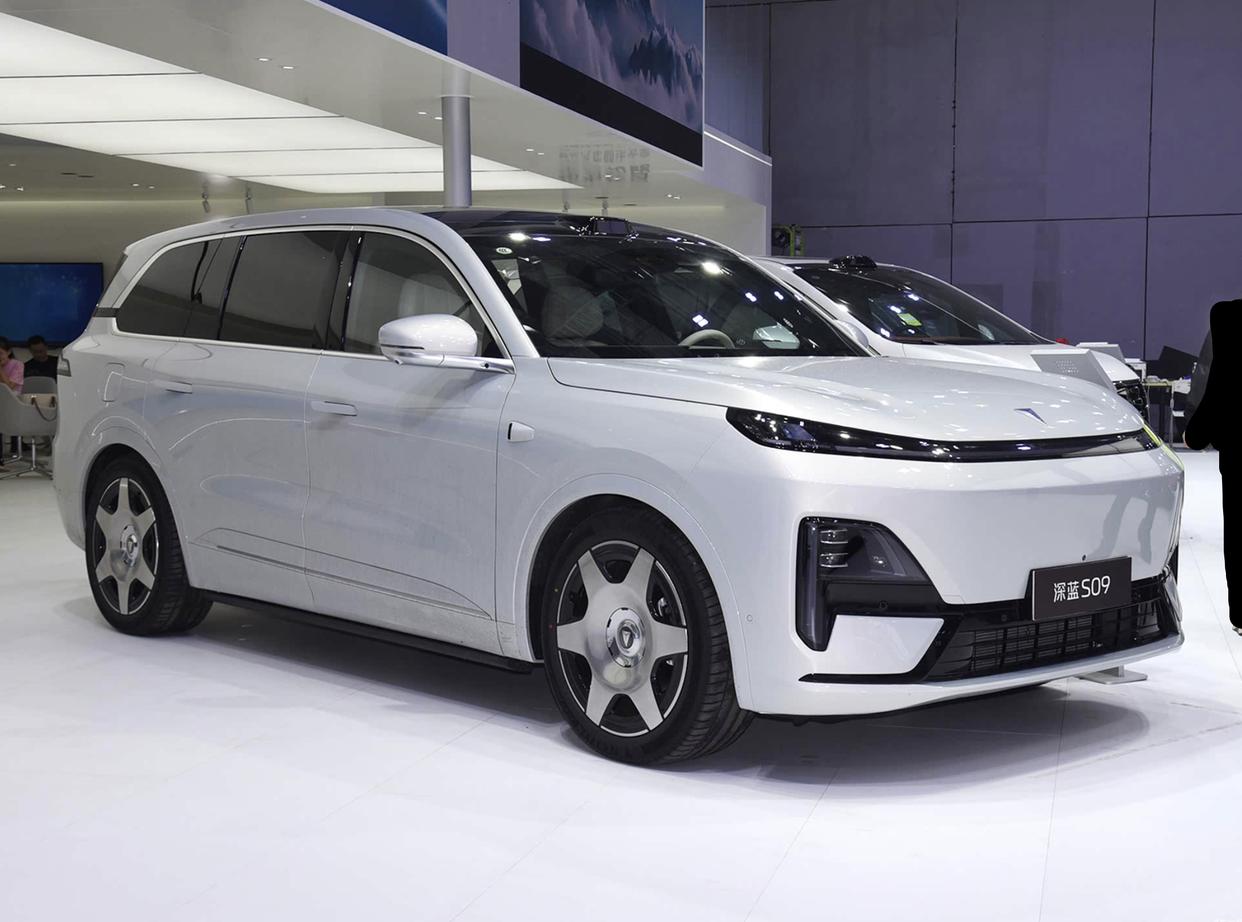 对于深蓝S09我们已经特别熟悉了,这款旗舰SUV车型采用了新能源车型惯用的设计理念。车顶正前方配备了激光雷达,拥有更多高阶智驾辅助。蚌壳前舱盖两侧边缘微微隆起,封闭式格栅上方配备了横向贯穿式的星环大灯,内部融入了满天繁星式的点阵式光点,十分科幻。封闭式格栅两侧配备了对称式的导流槽和类似旗子样式的前大灯组,直立式的LED光带和带头透镜功能的LED远近光一体式大灯也拥有更好的照明效果。前保险杠加入了黑色半封闭式的中网,再搭配着纤薄的黑色前唇,展现出了豪华旗舰SUV应有的强大气场。车尾采用了方正的轮廓,车顶向后延伸出的黑色的后扰流板,贯穿式尾灯加入了黑色灯罩,中间还配备了醒目的发光车标,夜间更加醒目,辨识度很高。