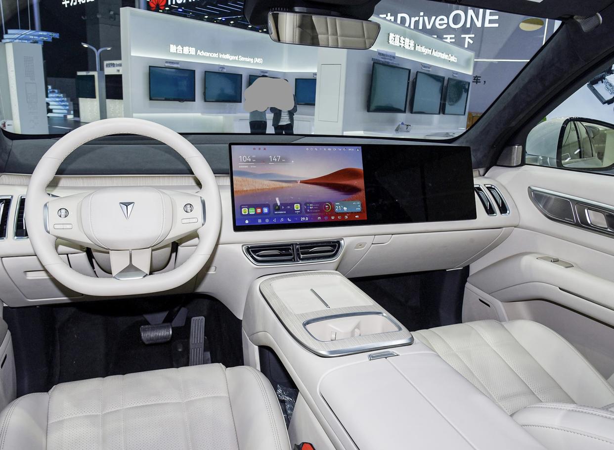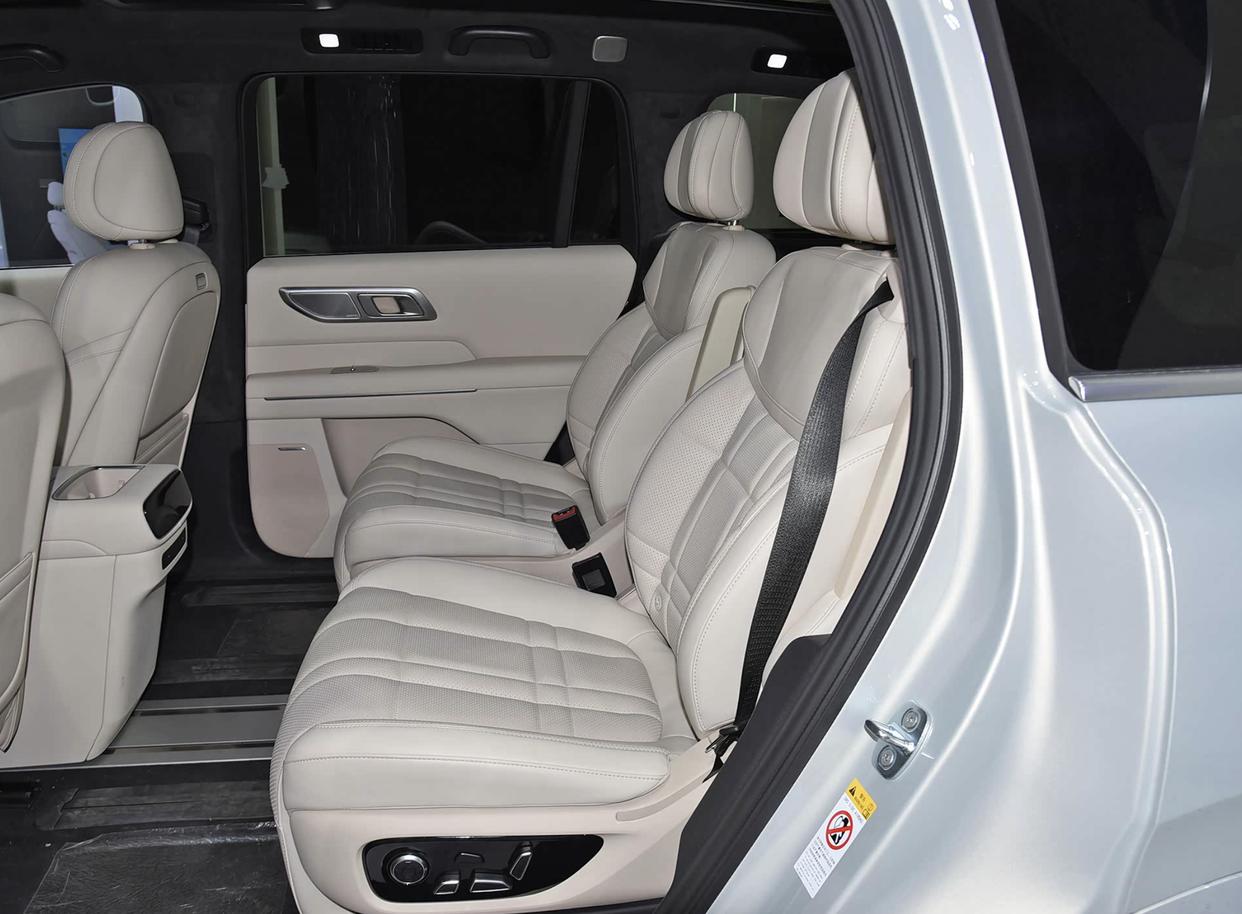 深蓝S09的车内也是采用了极简的设计理念,采用了饱和度很低的米白色软性材质铺陈,还加入了精致的白色缝线设计,营造出了更加温馨、舒适、惬意的乘坐环境。配备双15.6英寸悬浮式中控屏,2.5K分辨率,显示清晰,操作流畅,与副驾屏形成连体布局,为驾驶者和副驾提供了便捷的交互体验。此外,该车取消传统仪表,改为43英寸AR-HUD抬头显示系统,将导航信息与道路完美融合,关键信息一目了然。车内配备了6个独立沙发座椅,后排还配备了娱乐大屏,支持深蓝星球、深蓝乐园、深蓝语伴,丰富了孩子的旅途生活。第二排右侧座椅会提供小桌板,新增了儿童座椅生态应用,支持配对NFC卡片钥匙。新增了恒温座舱情景模式、露营模式新增了露营大床功能。