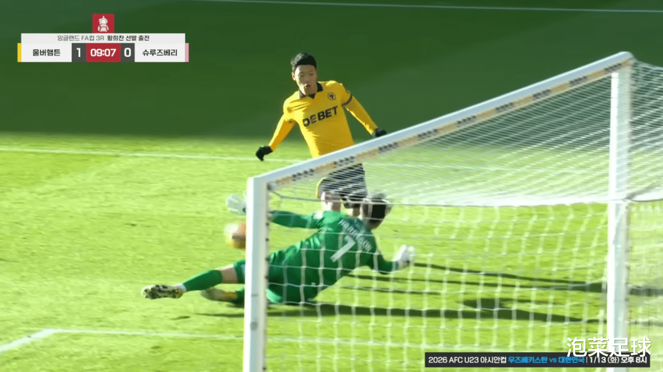 我们再来看英格兰足总杯第三轮的情况,在狼主场和什鲁斯伯里城的比赛中,黄喜灿又带来了惊喜。他先是开场获得射门机会打高,接着就贡献了个人的进攻点。第7分钟,黄喜灿接到队友的直传反越位成功。在面对对手门将出击的情况下,他冷静将球拨到中路,队友顺势用后脚跟将球打入,1-0!这也是黄喜灿2026年的第1次助攻。此后的比赛,黄喜灿多次获得射门机会,但可惜均没有打正。