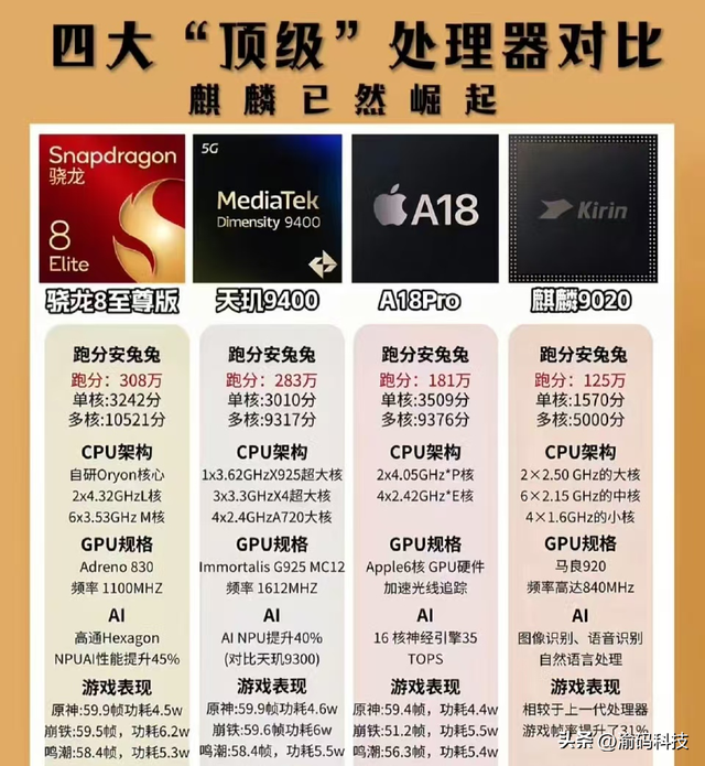 此外,麒麟9020的GPU升级为Maleoon 920,频率提高到了840MHz,使得其在图形处理能力上明显提升,尤其是在游戏和多媒体应用中表现出色。
