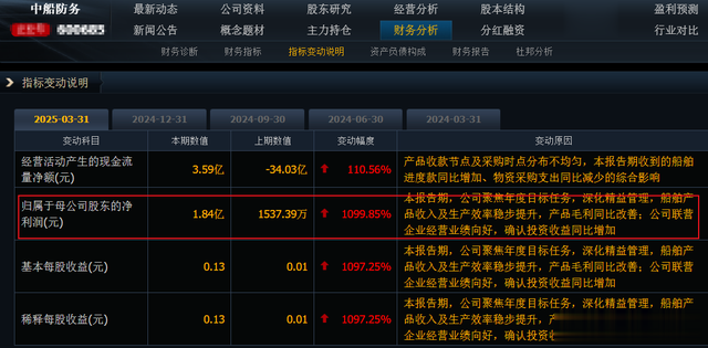 从2025年一季度业绩来看,则出现十分明显的分化。三大行业龙头中国船舶、中国动力和中国重工净利润同比增长超180%,中船防务更是暴增近11倍。同时也有中船科技、昆船智能等4家个股净利润同比下降超100%。