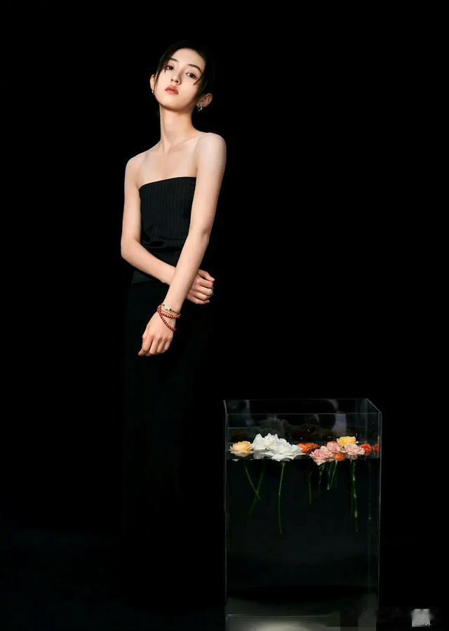 张子枫,黑色抹胸长裙,纤细柔弱,我见犹怜
