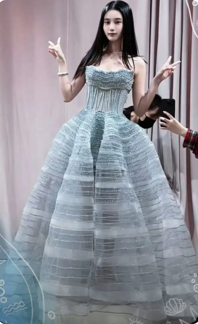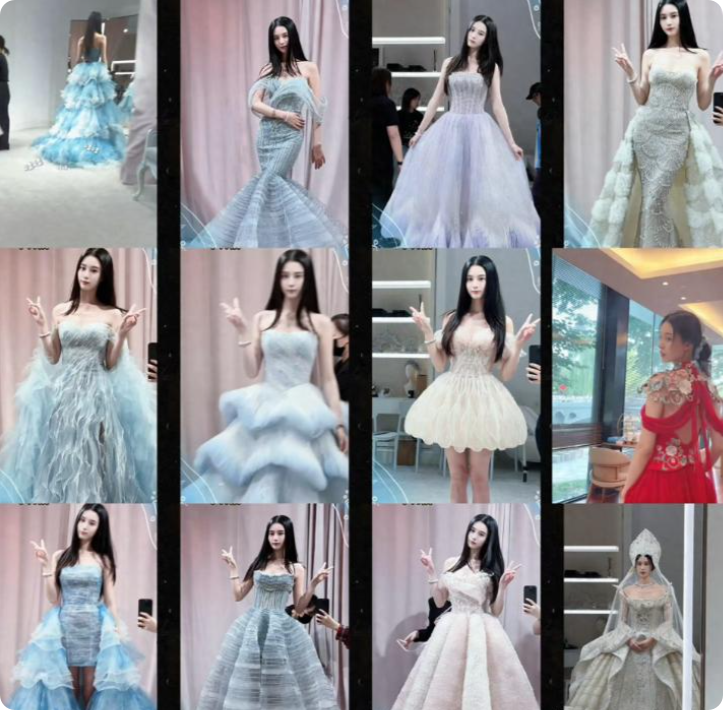 不是简单走个流程,而是从浅蓝梦幻抹胸款到全手工红色中式礼服,她换了整整十二套,每换一套都在镜头前自然比耶,那种发自内心的开心根本藏不住。但网友的评论却两极分化——有人直呼“影楼风太重”,也有人力挺“这就是自信新娘该有的样子”。