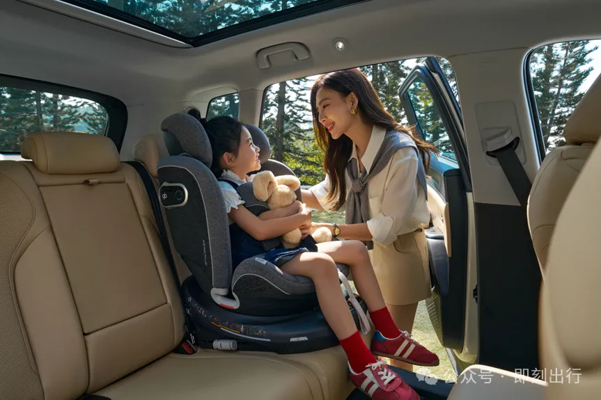 新车围绕家庭用车场景深度优化智能体验,打造可进化的舒享座舱,把实用与贴心做到极致。与好孩子联合开发的智能儿童安全座椅,支持车机互联与语音控制,上车自动旋转迎宾,抱娃入座无需弯腰费力,宝妈宝爸再也不用为孩子乘车发愁;车内还集成倍轻松智能颈部按摩仪与眼罩,语音或车机一键启动,长途旅途随时舒缓疲惫。