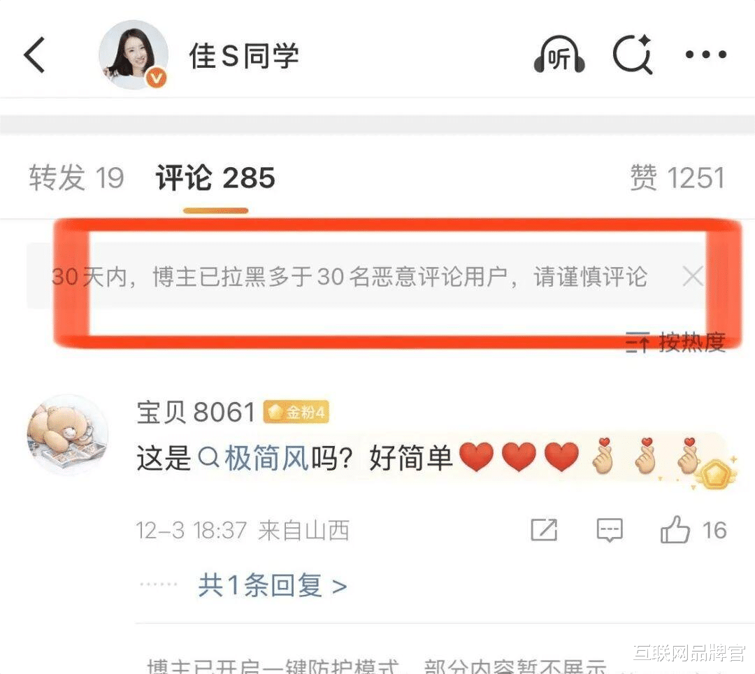 自12月3日后就没再更新,评论区里“博主已拉黑多于30名恶意评论用户”的提示,道尽了背后的狼狈。