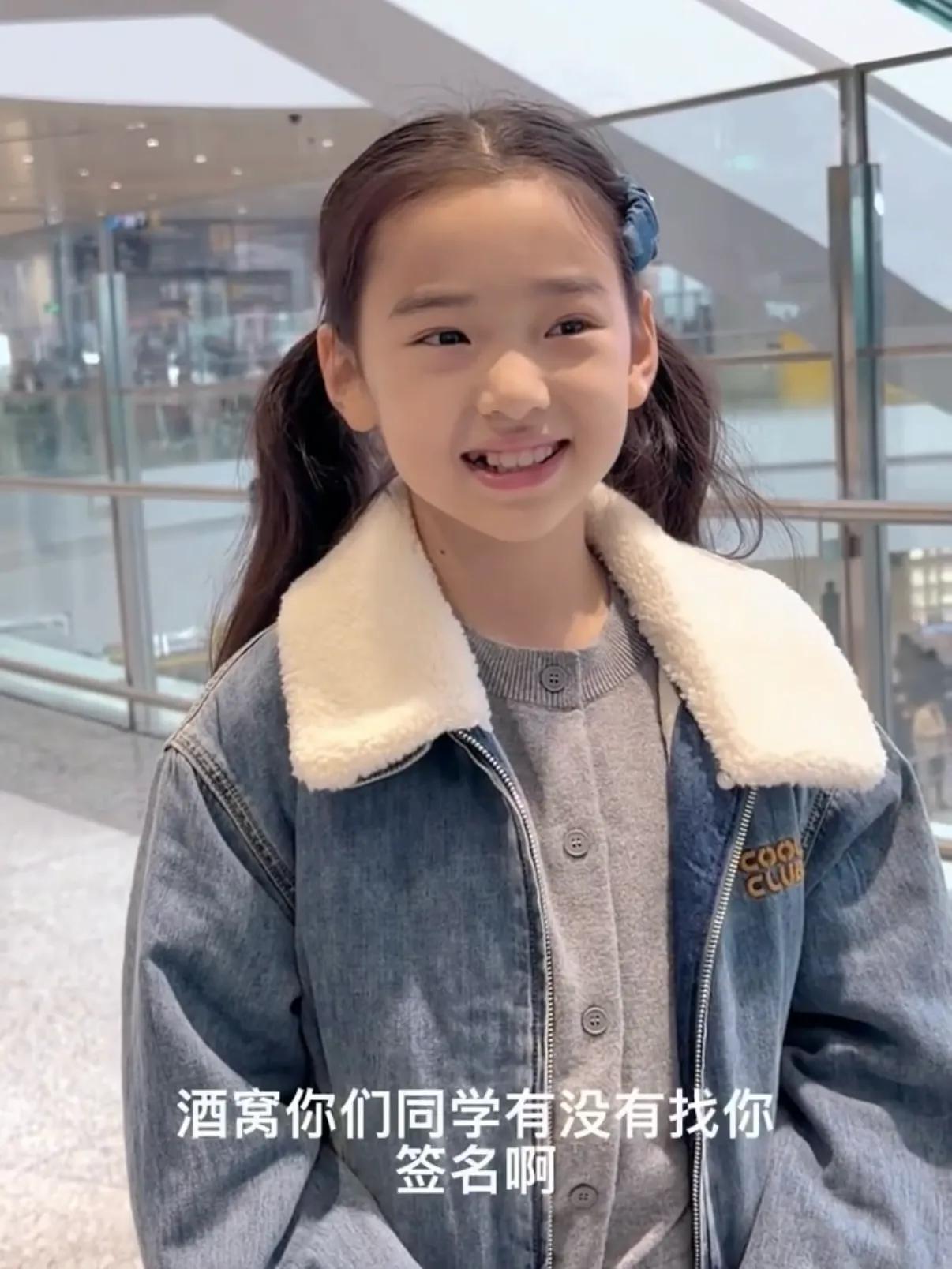 10月29日,董璇9岁的女儿小酒窝现身机场去宜昌参加电影节。