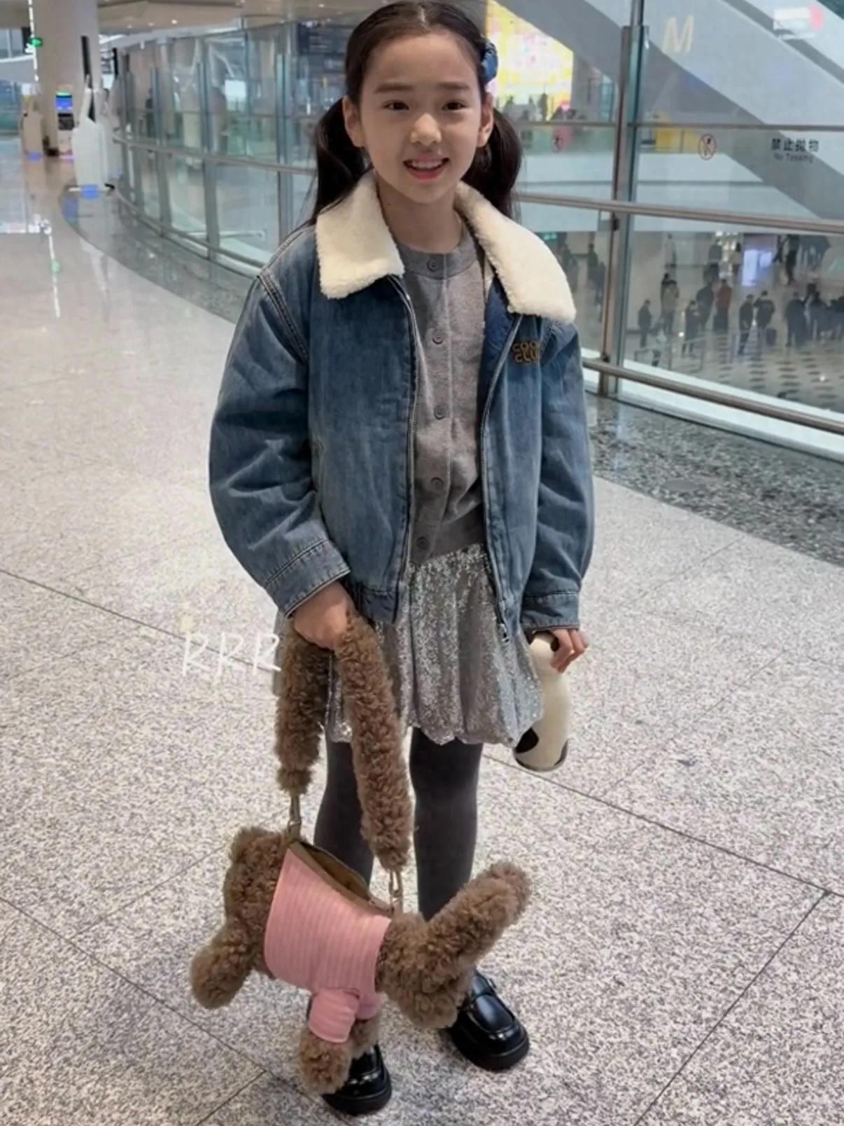 当日,小酒窝扎着双马尾,身穿牛仔外套和银色亮片裙,背着一个毛茸茸的包包,一身打扮甜美靓丽,看起来十分可爱。小酒窝因为经常去机场,所以跟很多摄影师都相处的很好,也是因为小酒窝真的太可爱太招人喜欢啦。