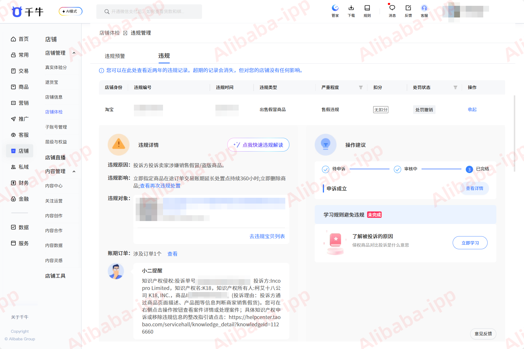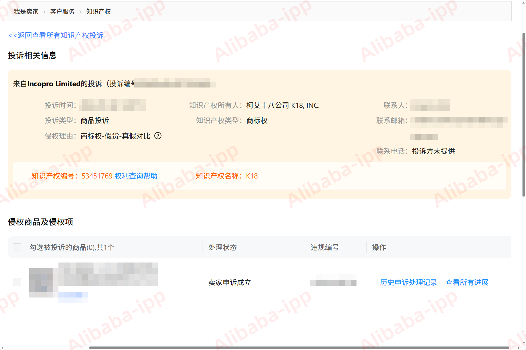 经过周密且有针对性的材料组织与陈述,我们再次提交了申诉。这一次,审核结果迎来了转机。平台最终认可了我们提交的材料与论述,判定我方商品不存在售假行为。原处罚被撤销,商品链接得以恢复,店铺的运营风险也随之解除。面对知识产权所有人柯艾十八公司K18, INC.(知识产权编号53451769)发起的这次“真假对比”投诉,商家通过专业、不懈的努力,最终维护了自身的正当权益。