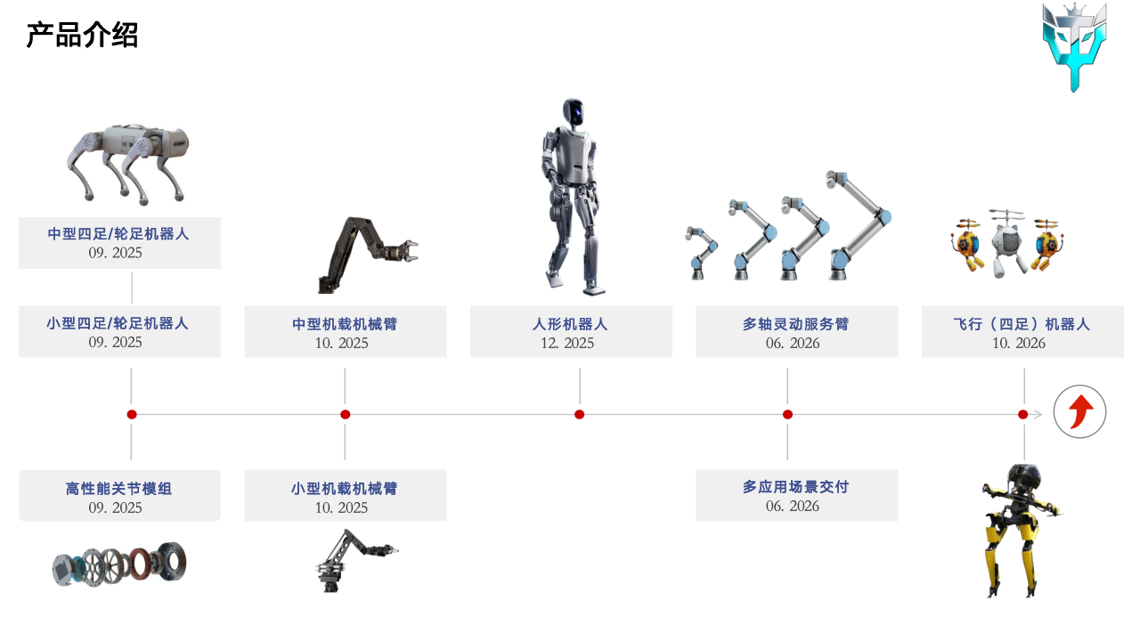公司的产品矩阵丰富而前瞻,已推出小型及中型四足/轮足机器人,并规划于今年年底发布人形机器人,明年更将推出可飞跃障碍的飞行机器人,持续拓宽机器人的应用边界。这些机器人并非实验室的展品,而是为真实物理世界而生的实用工具。它们拥有极限的地形适应能力,可轻松翻越20-35厘米的障碍、在50度的斜坡上稳定行走,并能在草地、碎石、泥地等非结构化地形中保持超强通过性与动态平衡。即使在外力干扰下,其自研的具身智能AI算法也能瞬间调整步态,确保机身稳定。