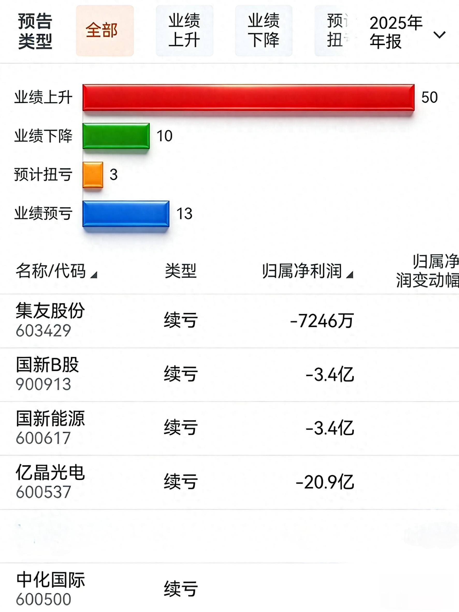 今日预告的2025年年报业绩里,几家连续亏损且亏损金额较大的A股公司,务必提高警惕: