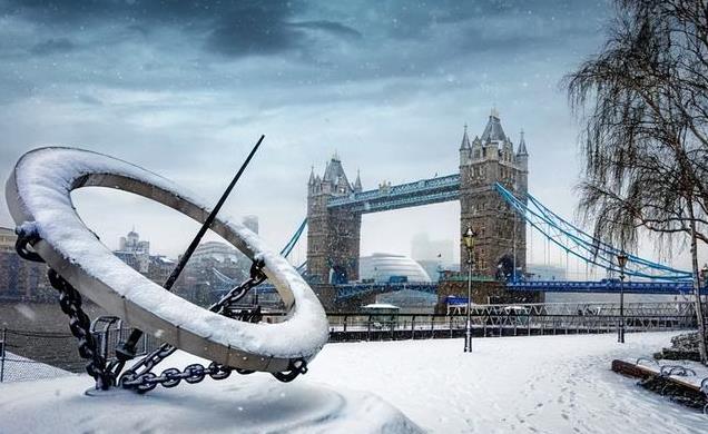 再往北,英国伦敦位于北纬51度左右,冬天是这样的;