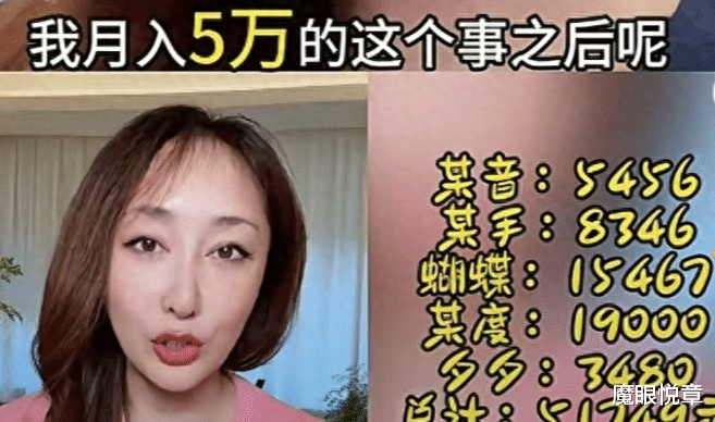 如今,抛开前电视台女主持人的头衔光环,转型为全职自媒体博主的王洋,依然有自己的实力加持。自从她发布了自己做博主可以月入5位数的视频后,账号后台被用户私信挤爆。最高频的问题均集中在如何做到?自媒体真的这么好赚钱?