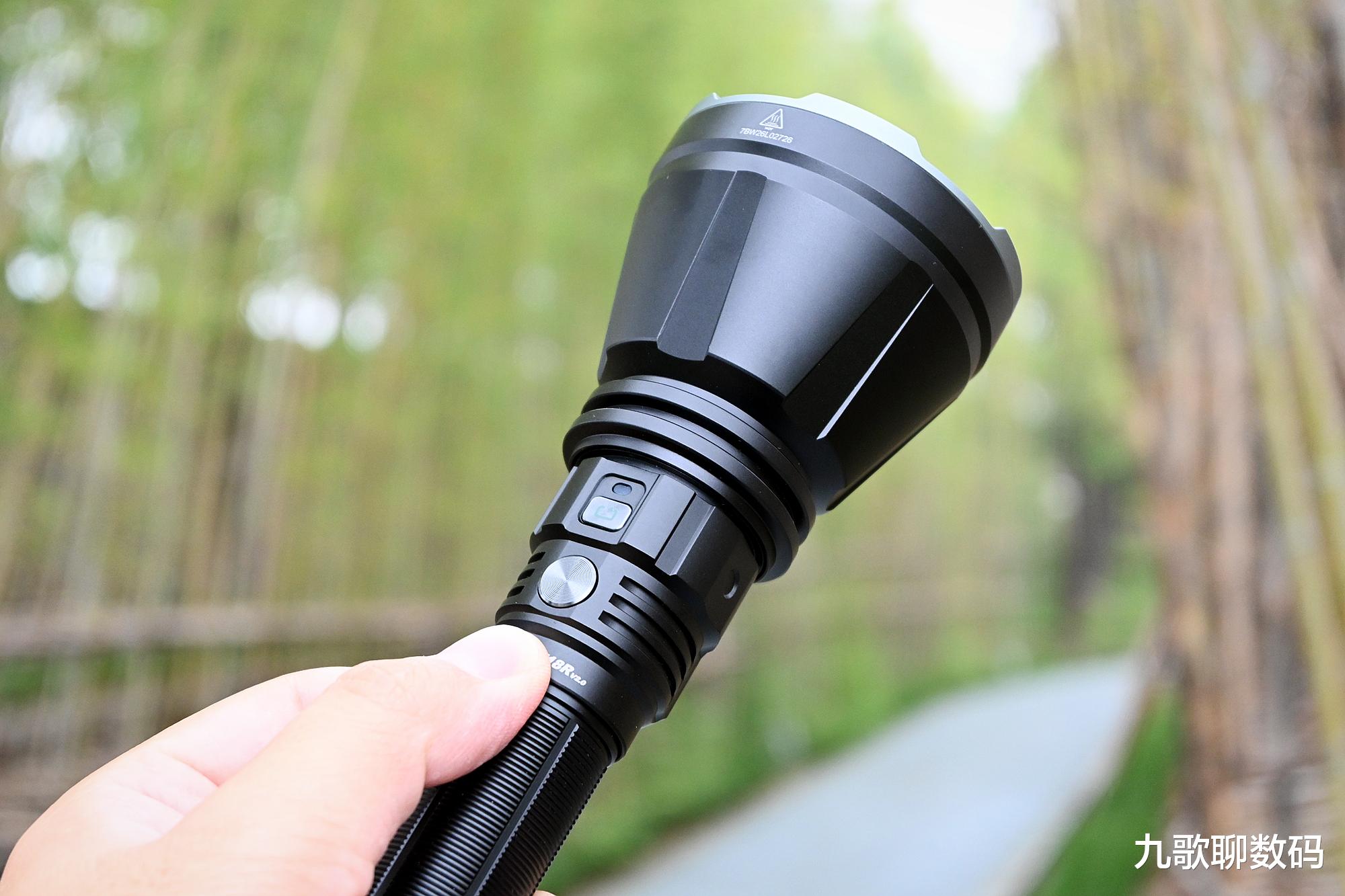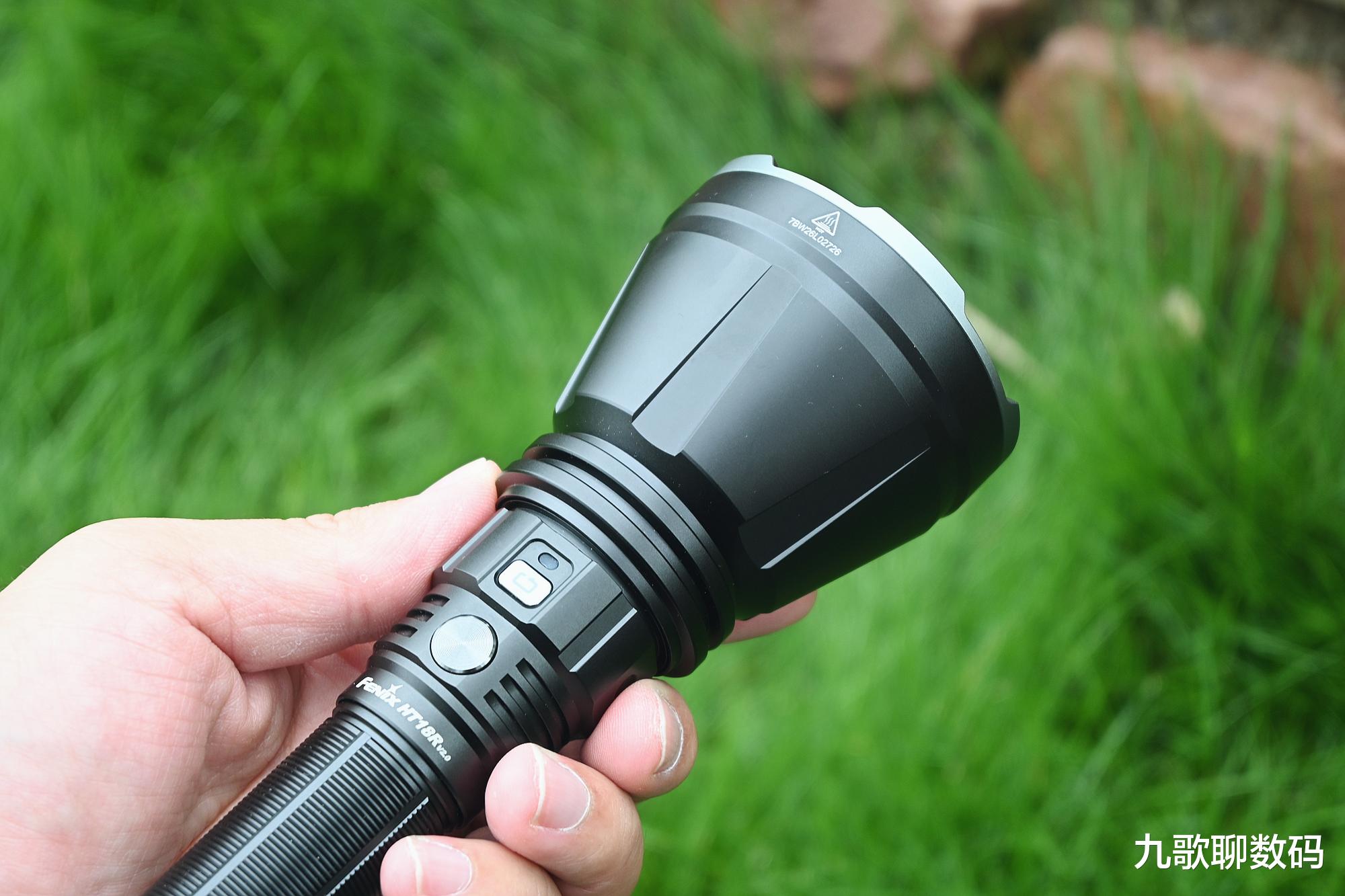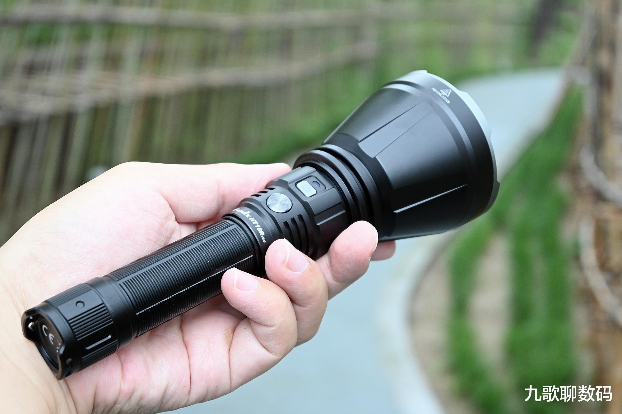 与白激不同的是,后者只有聚光,搜索定位可以,但日常照明差强人意,所以有些白激手电会在旁边加上一圈LED副灯以增强其泛光表现。而HT18R V2.0就完全不用,它的亮度很高,千米射程下不仅可以照得很远,其泛光面积也足够广。不会出现灯下黑的情况。在照得亮,射得远的同时,也能兼顾到铺路和周围环境的照明。