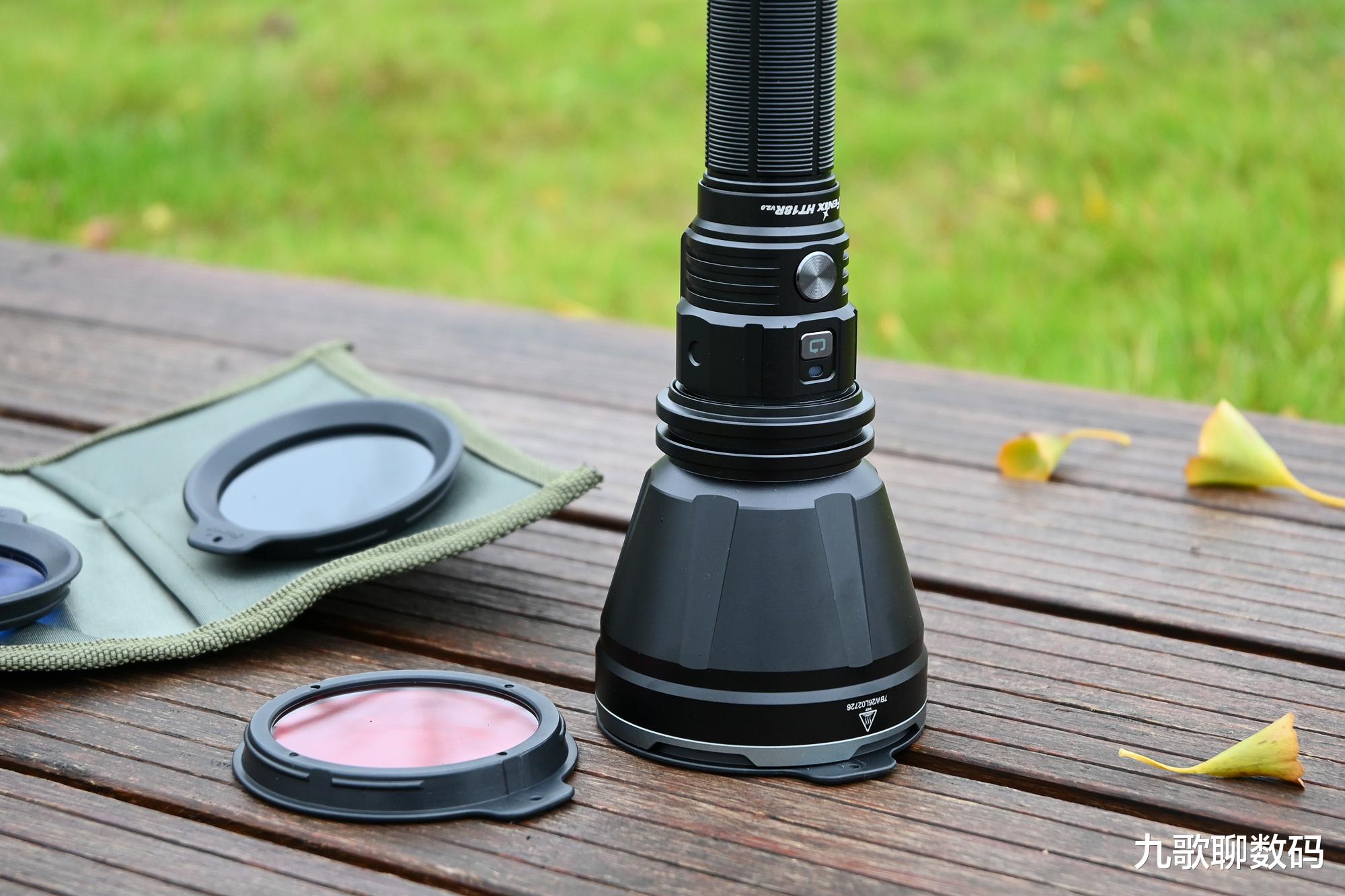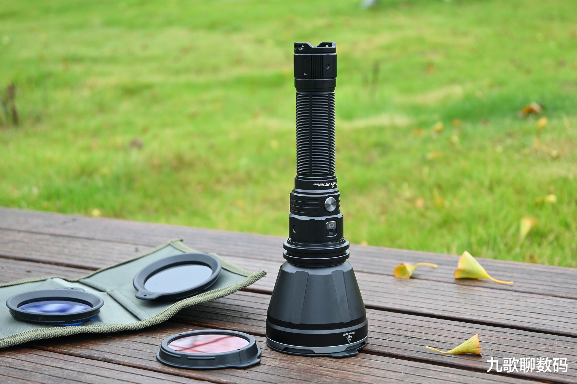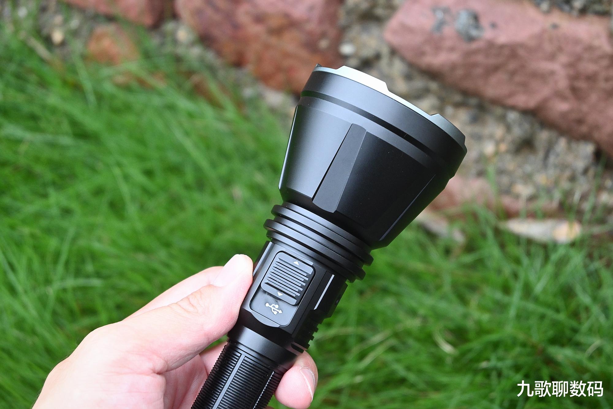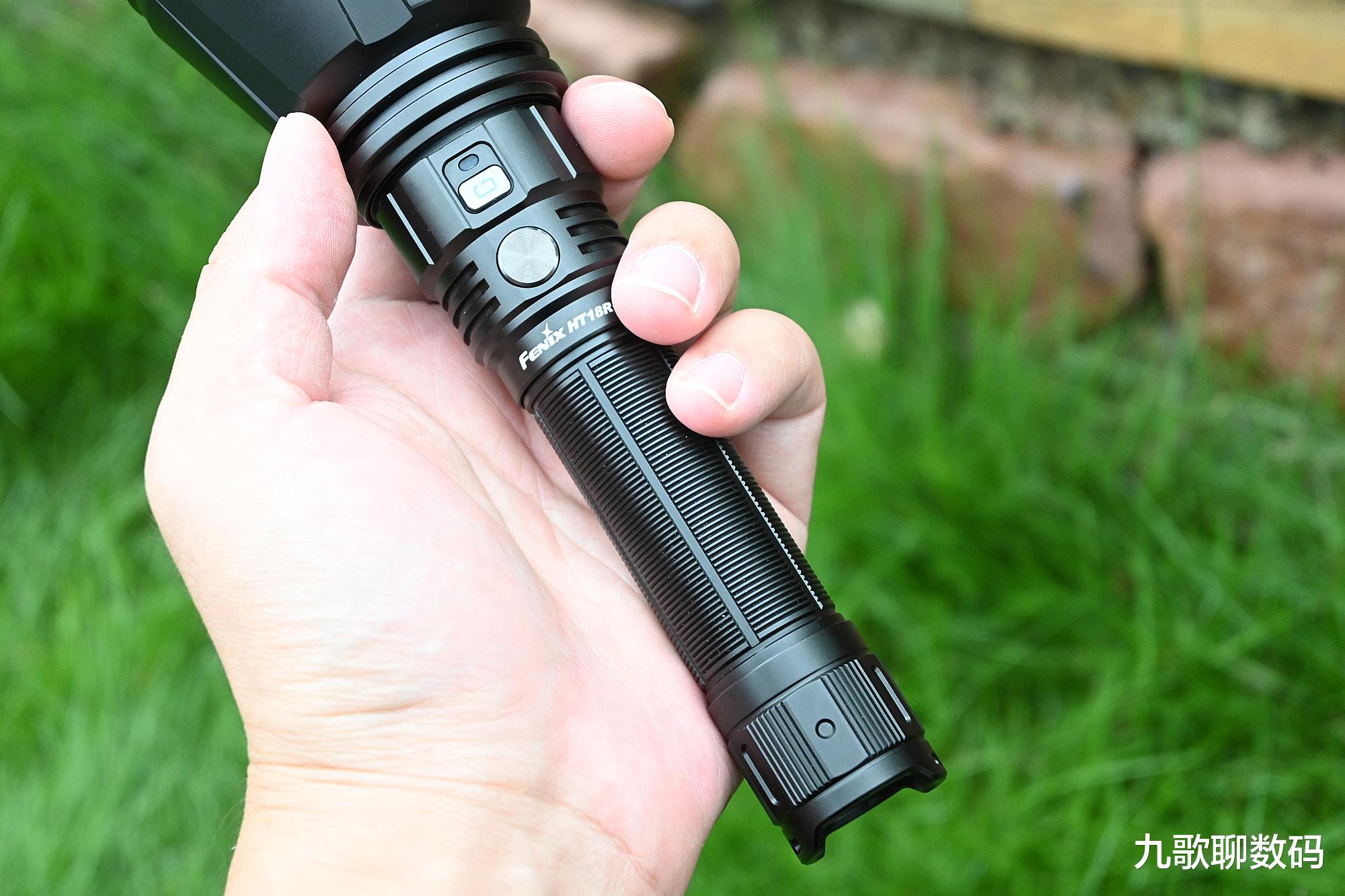 与白激不同的是,后者只有聚光,搜索定位可以,但日常照明差强人意,所以有些白激手电会在旁边加上一圈LED副灯以增强其泛光表现。而HT18R V2.0就完全不用,它的亮度很高,千米射程下不仅可以照得很远,其泛光面积也足够广。不会出现灯下黑的情况。在照得亮,射得远的同时,也能兼顾到铺路和周围环境的照明。