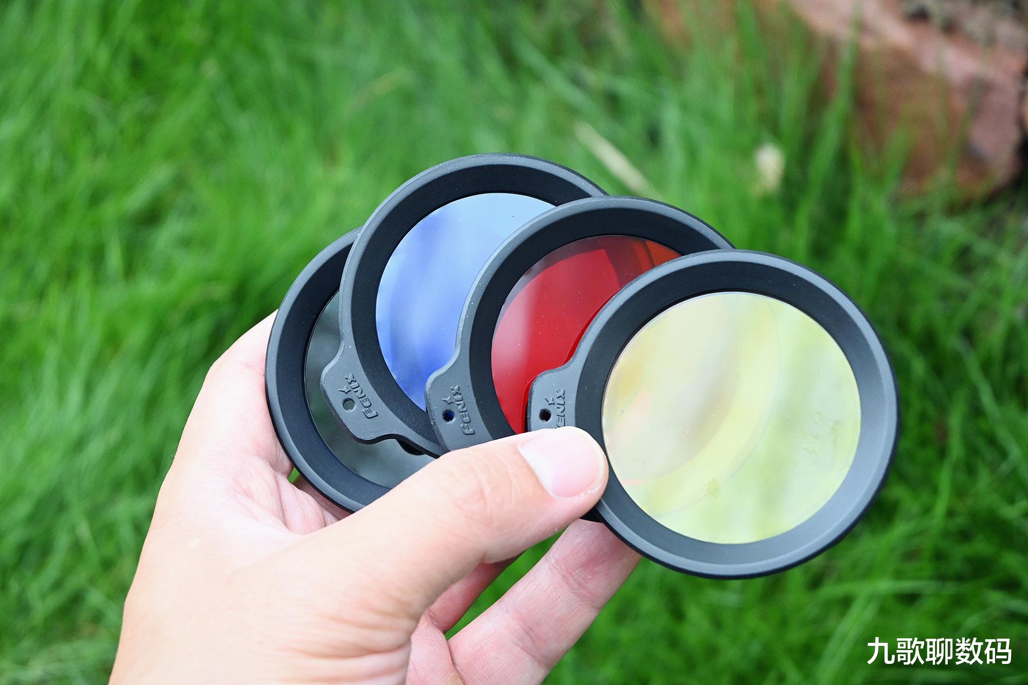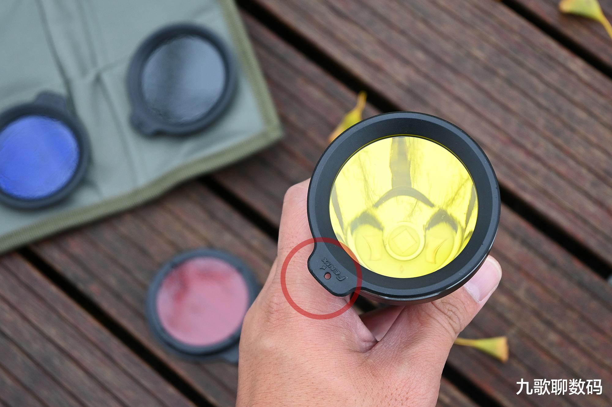 包内有红、绿、黄、蓝四色镜片,如红光适于夜视;绿光隐秘追踪;黄光穿透力强,可穿透重重迷雾;而蓝色可以让痕迹显影。不色光色的滤镜搭配上V2.0版的千米远射后能达到非常出色的效果。像狩猎、搜索等多元化场景中都能用得上。滤镜的安拆也很简单,只要捏着凸出的一角摁下或揭开就可以了。实测戴上镜片后还是很牢靠的,剧烈甩动也不会脱落。如果想要更安全一点,看到那圈起的小孔了吗?可以搭配细绳将其与尾盖绳孔连在一起,这样就不会弄丢了。