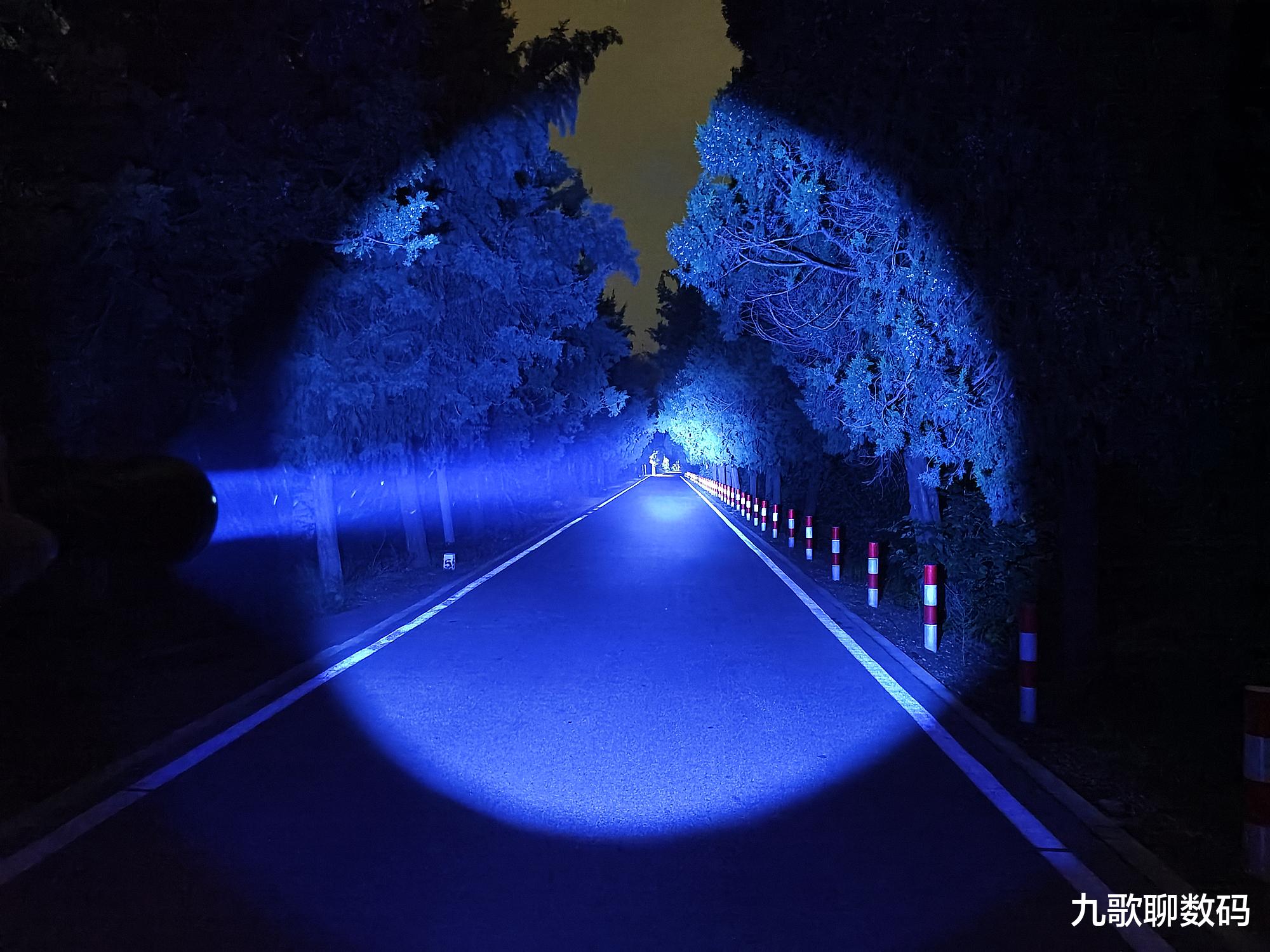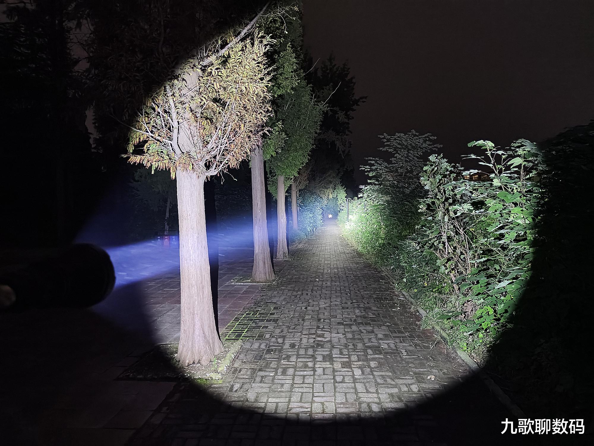 手电的泛光区域也足够大,大到其覆盖面积足以照亮周边道路及环境,铺路穿林的效果让人惊艳,这就是大头远射的魅力所在,比那些远射小直只有500-700米的射程要强悍不少。无论是日常照明,还是野外露营,乃至搜救探险都是十分妥帖的选择。