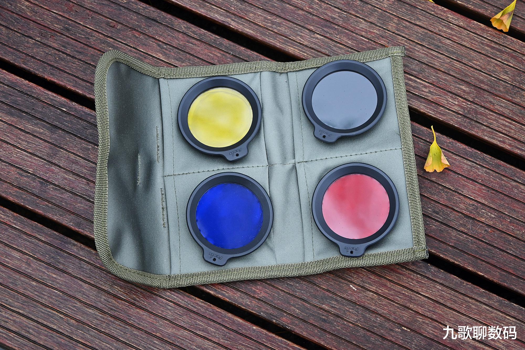 包内四个小口袋正好对应四片彩色滤镜:不仅滤镜更丰富了,而且一起携带也更为方便。之所以这样设计应该是考虑到有些用户并不需要滤镜,减少这一配件还能进一步降低成本,价格上也更优惠。而对于用到滤镜的朋友可以直接选择套装,或者日后有需要了也可单独购买。