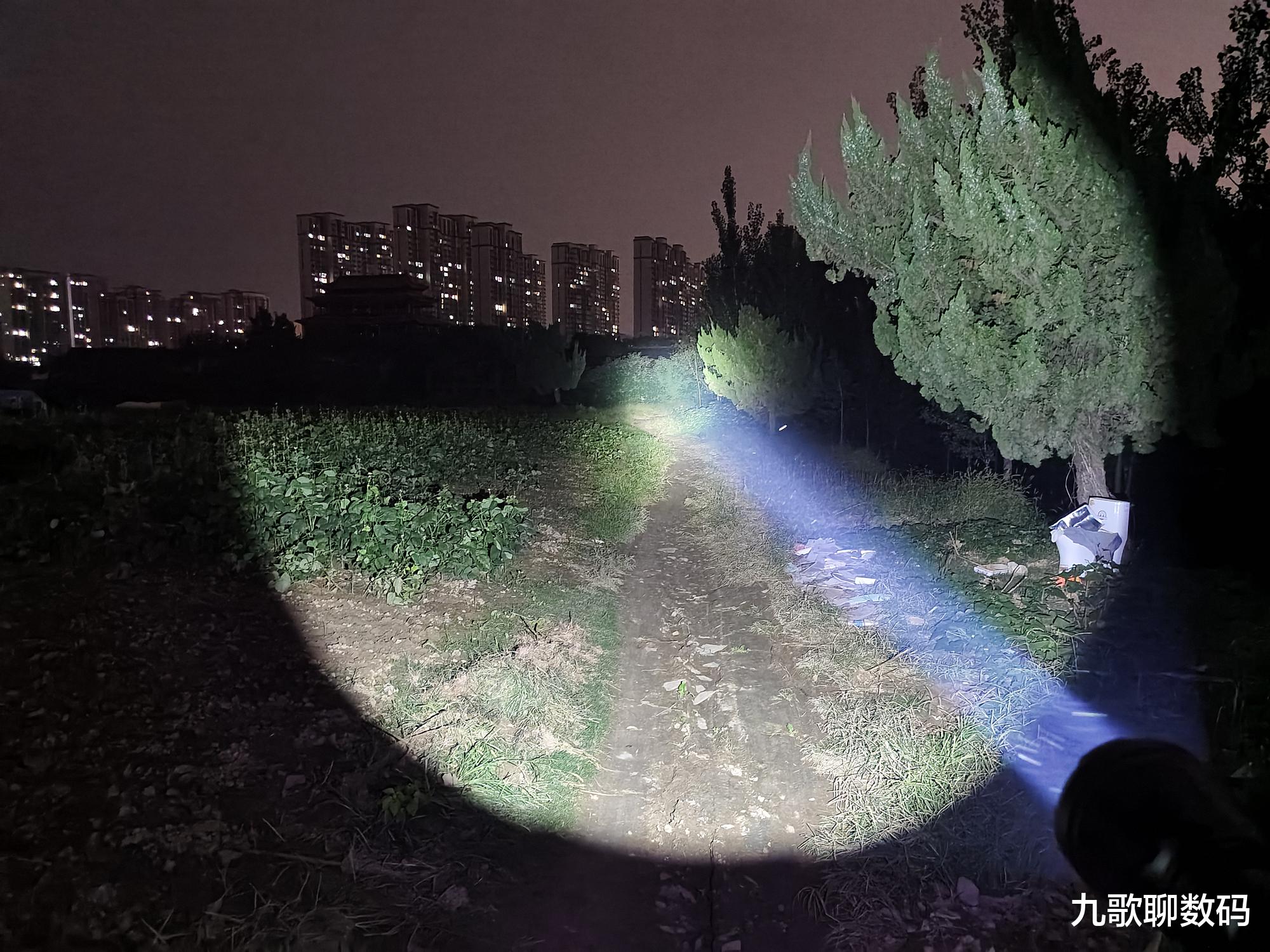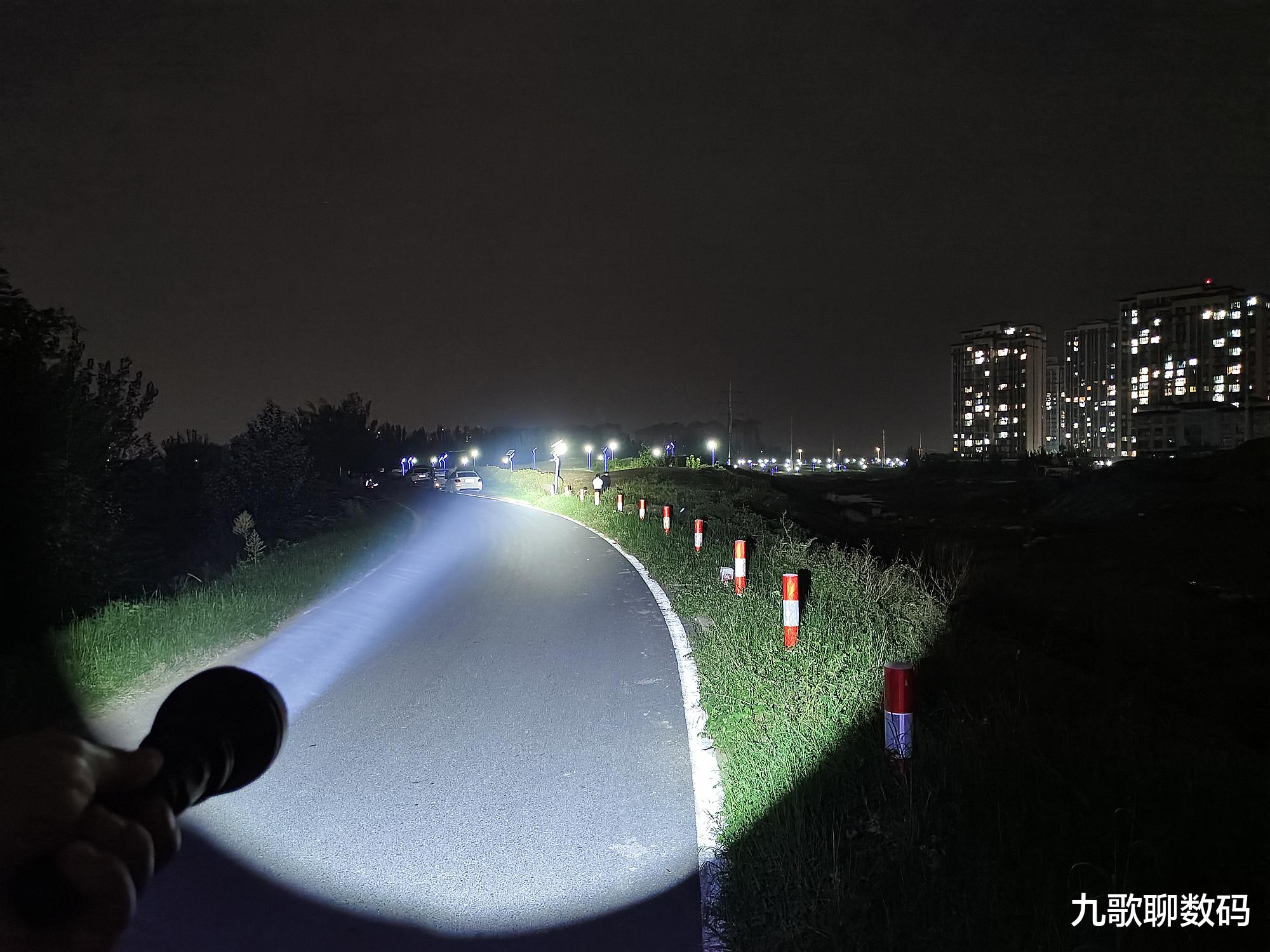 高亮和低亮档下也能分别达到570米和330米的射程,表现同样优秀,也不会太过打扰到周边路人。这是我的常用档位。虽说亮度无极亮那么高,但光柱依旧很明显。以下是更多场景夜射展示: