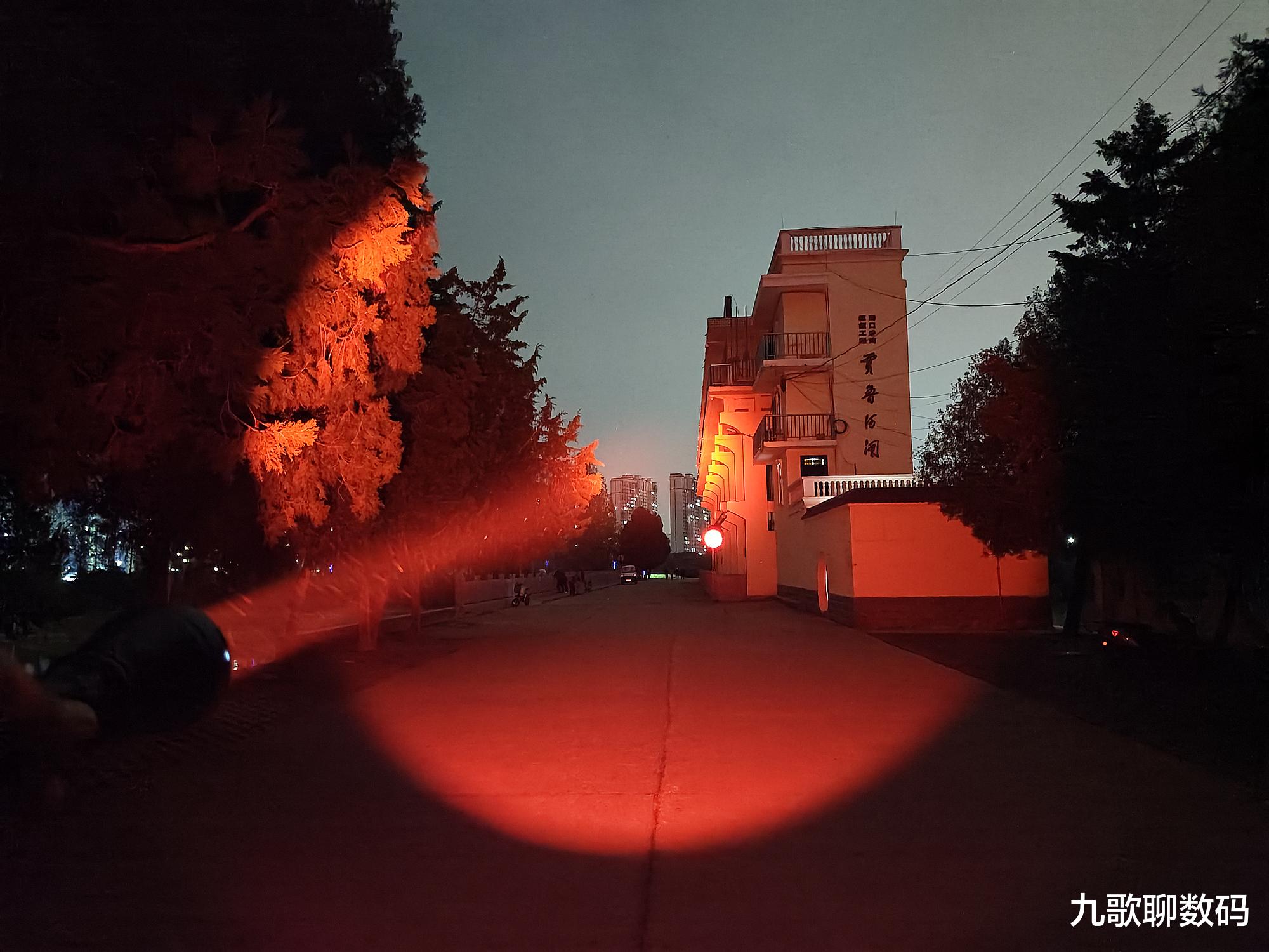 红光要更为柔和,不刺眼。夏天也可驱赶蚊虫。在搜索目标的同时,不会对周边造成影响。可以看到虽相隔数百米,但远方的瞭望楼仍能清晰可见。