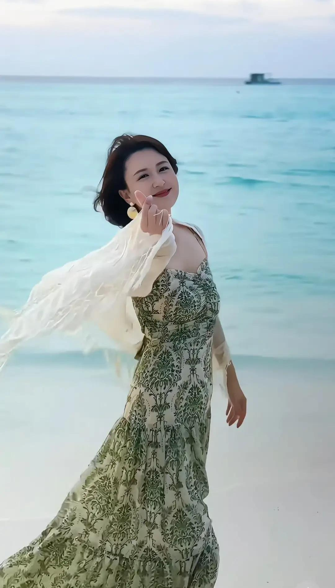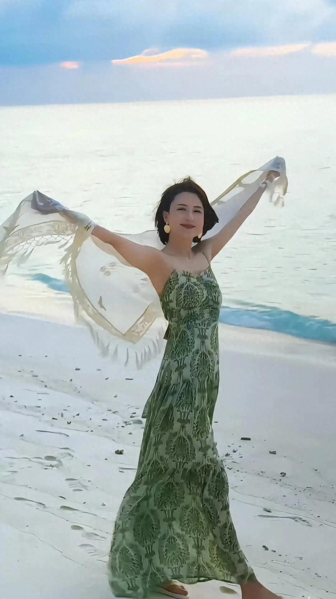 46岁张蕾穿吊带裙海边跳舞,被网友称赞为最美女主持人,实至名归,景美人更美,人长得漂亮,心态也好,越活越年轻了。